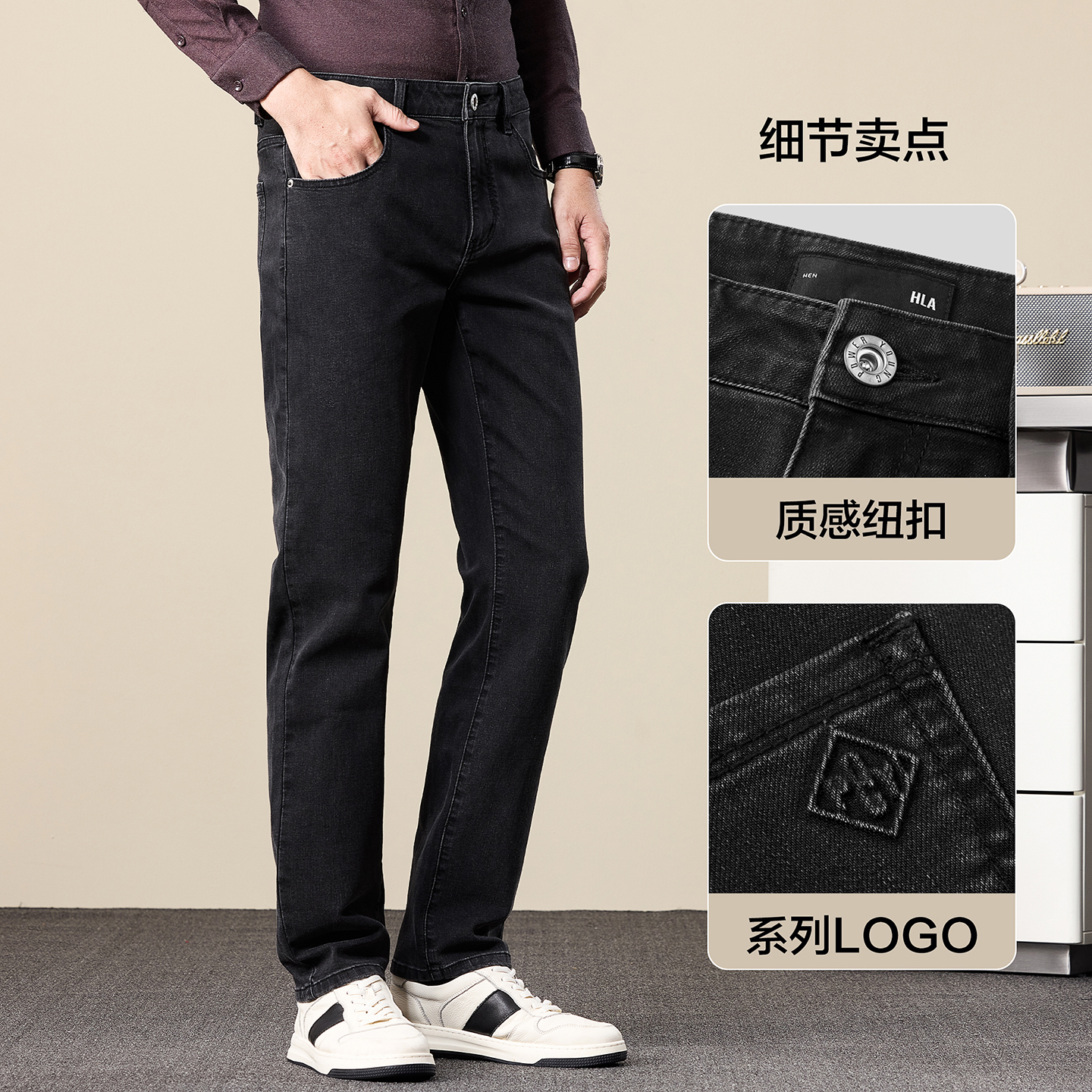 海澜之家POWER YOUNG系列高端牛仔裤25秋新款黑色含莫代尔裤子男