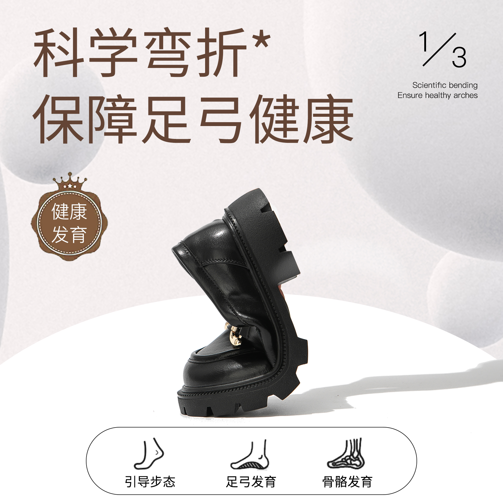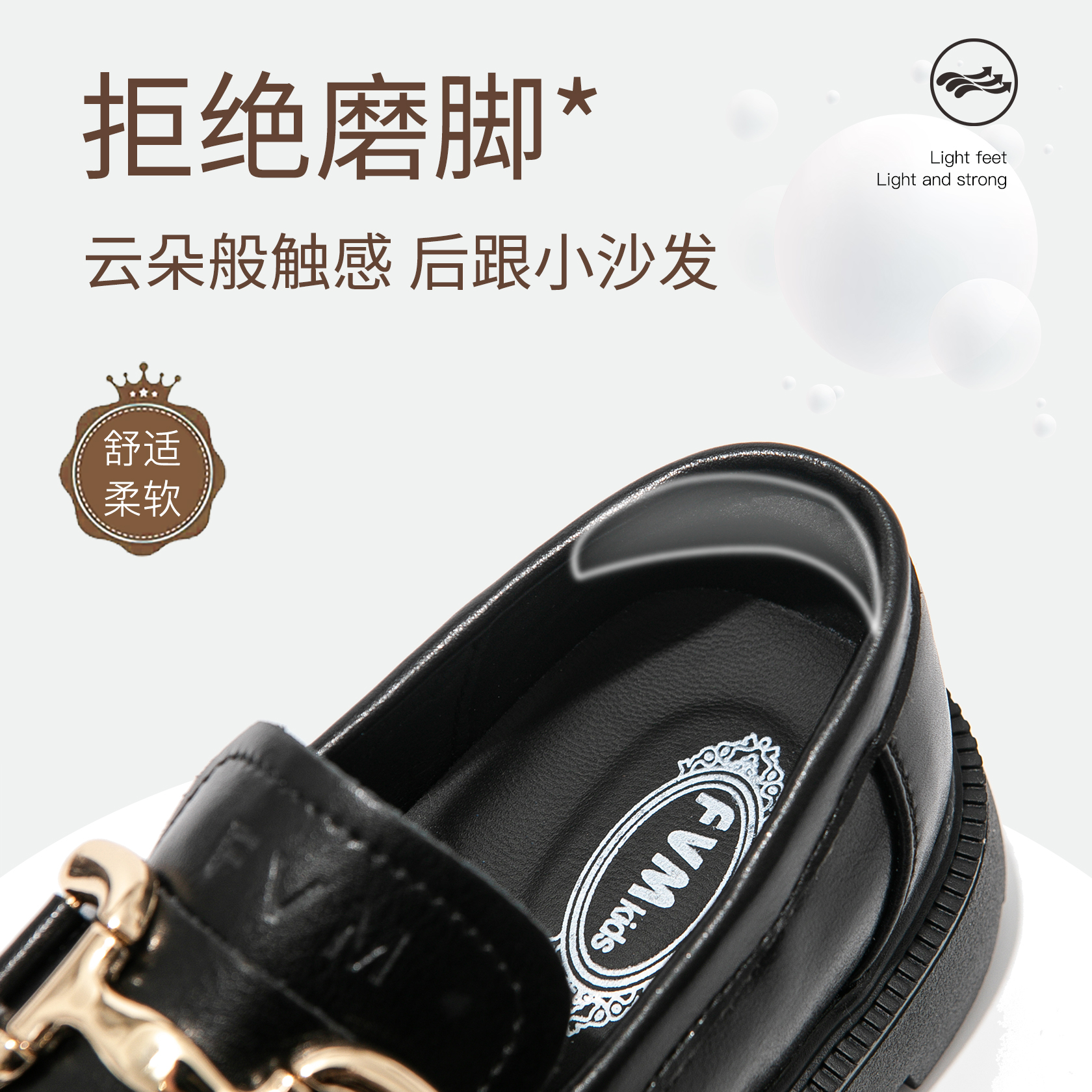 FVM女童鞋子儿童公主小皮鞋2025春秋款新款黑色乐福单鞋软底洋气
