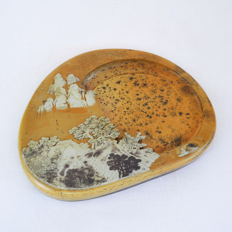 攀枝花苴却砚手工雕刻精品黄膘山水砚台金色年华收藏送礼学生实用