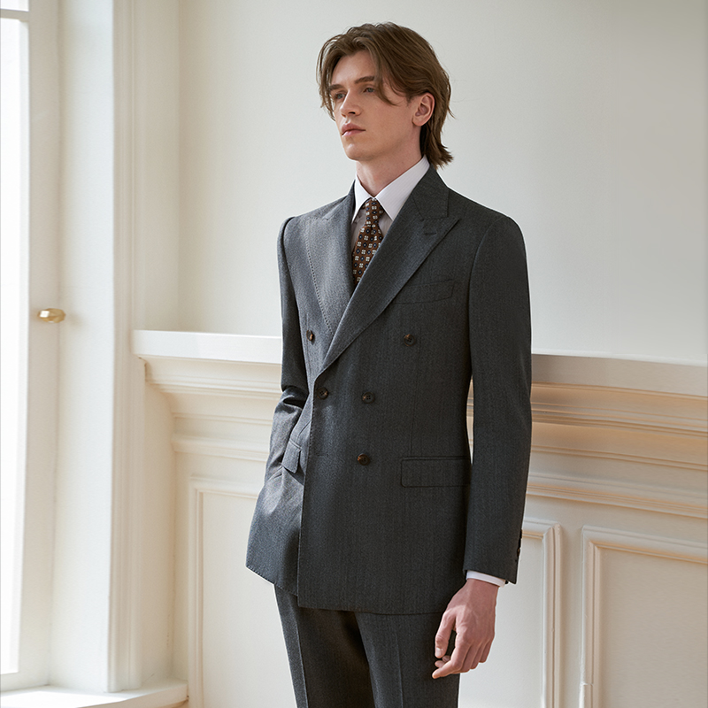 澳嘉双排扣人字纹男士西装套装修身高端商务正装新郎结婚羊毛西服