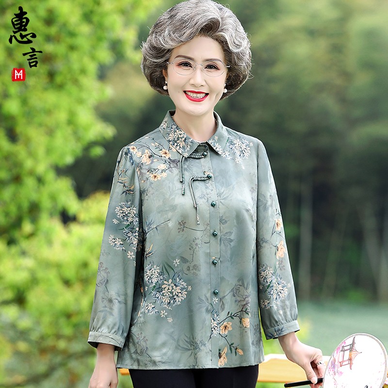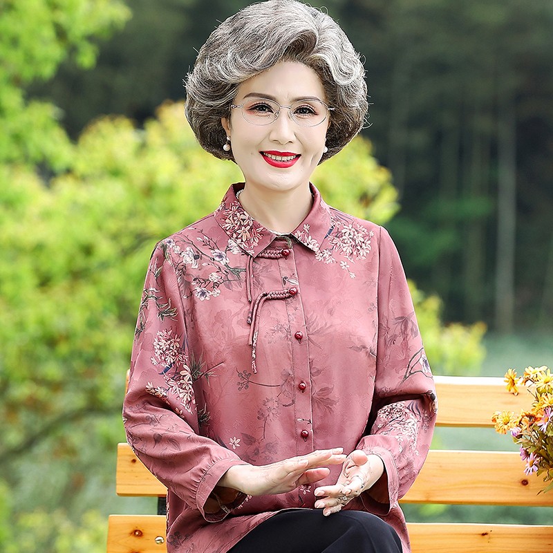 奶奶夏装衬衫中老年人上衣女70岁妈妈春秋套装老太太衬衣高档衣服