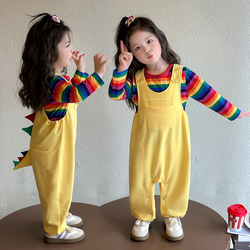 儿童恐龙衣服2025新款秋装幼儿园表演服男童女童可爱背带裤套装