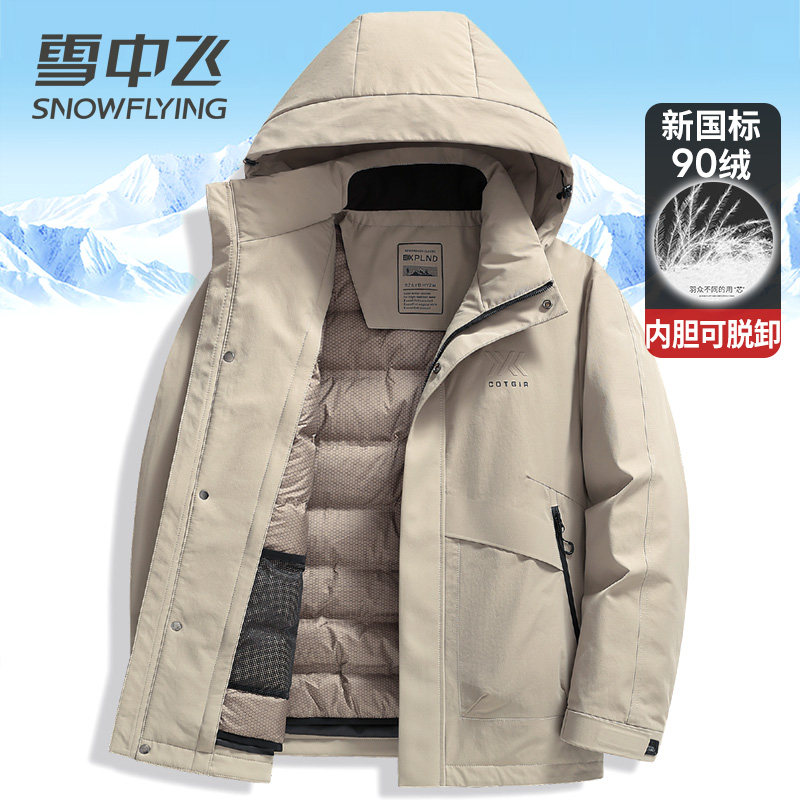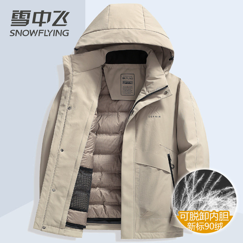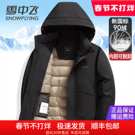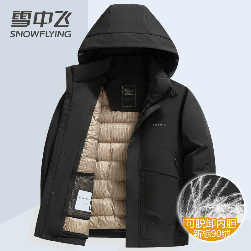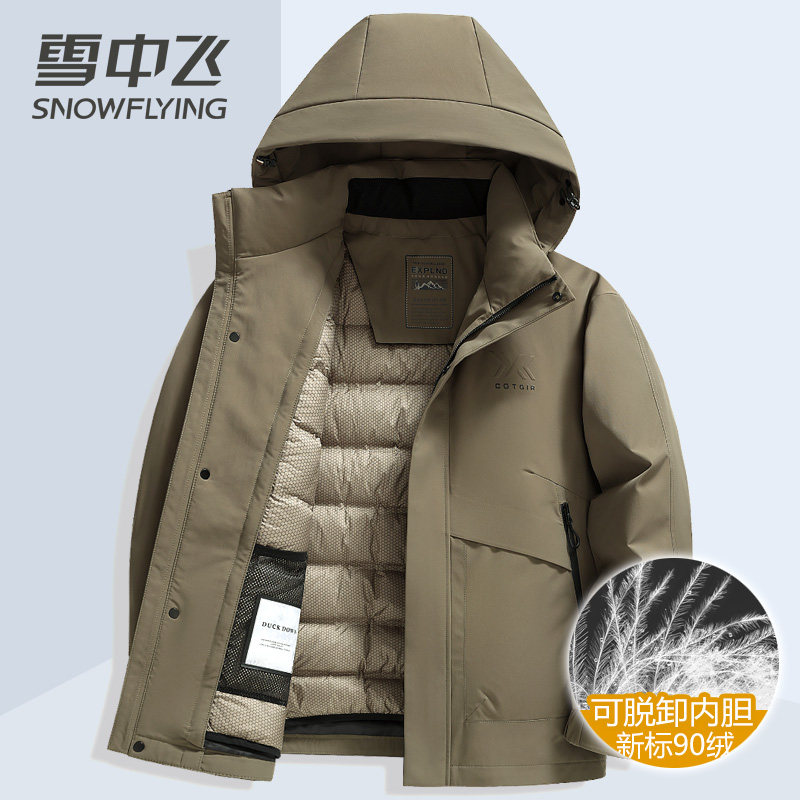 雪中飞连帽内胆可脱卸羽绒服男2025新款冬季外套时尚中青年鸭绒服