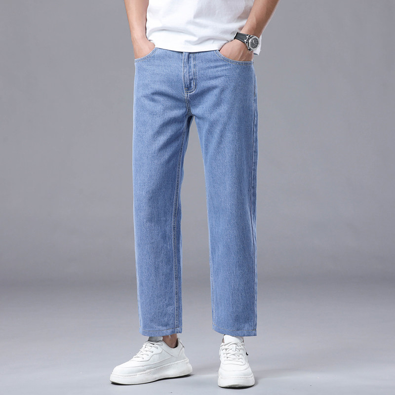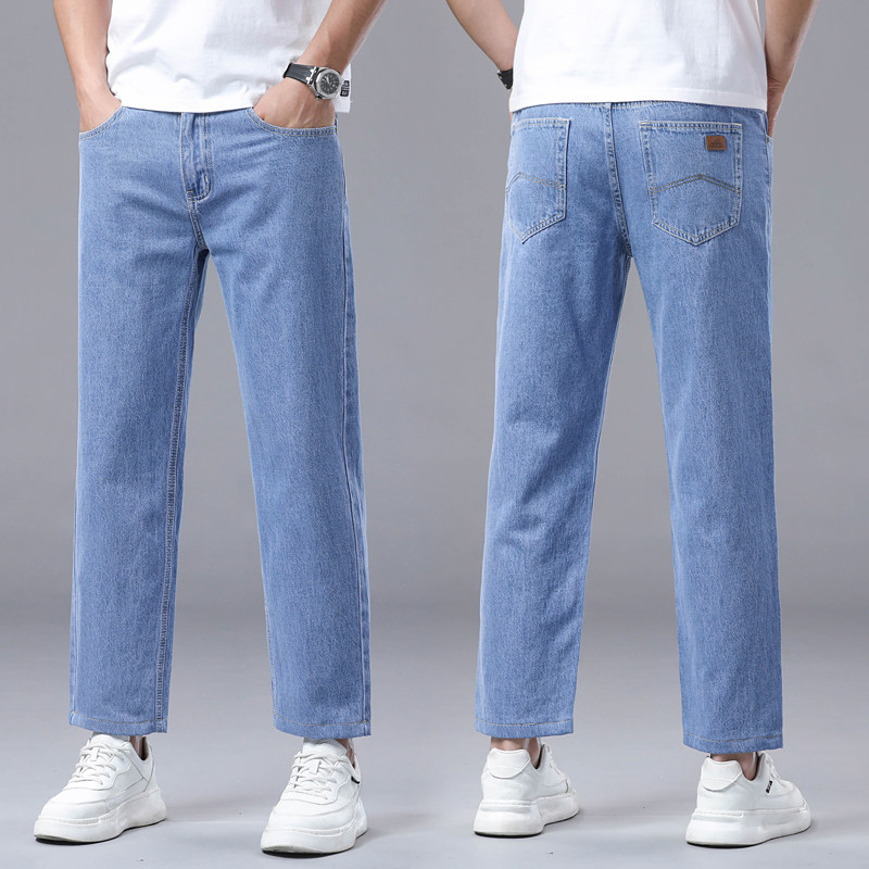 夏季薄款男士九分牛仔裤矮个子宽松直筒9分裤冰丝超薄小个子男裤
