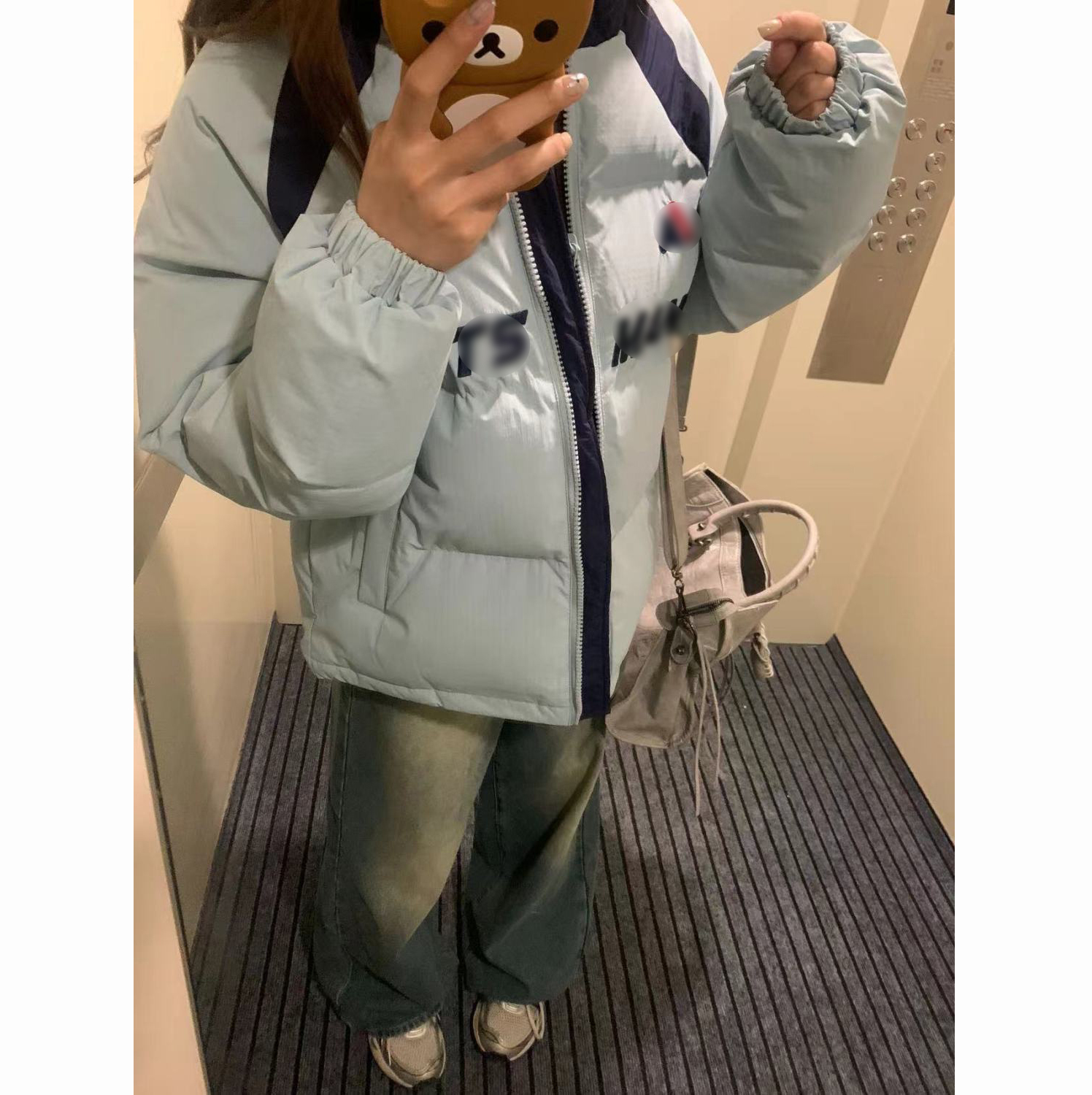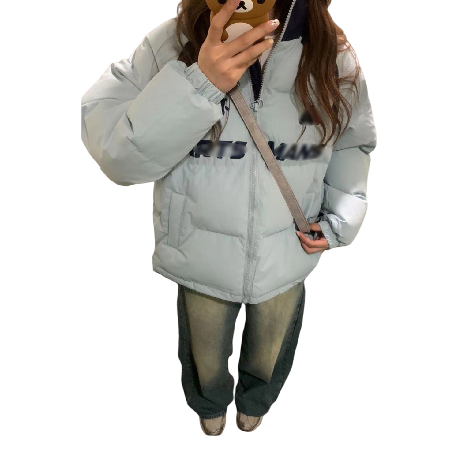 2025冬季新款多巴胺拼色保暖外套棉服女设计感刺绣慵懒学生面包服