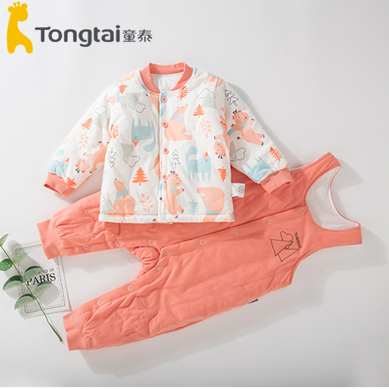 童泰秋冬新款薄棉闭档背带裤套装6-24月男女宝夹棉两件套3275