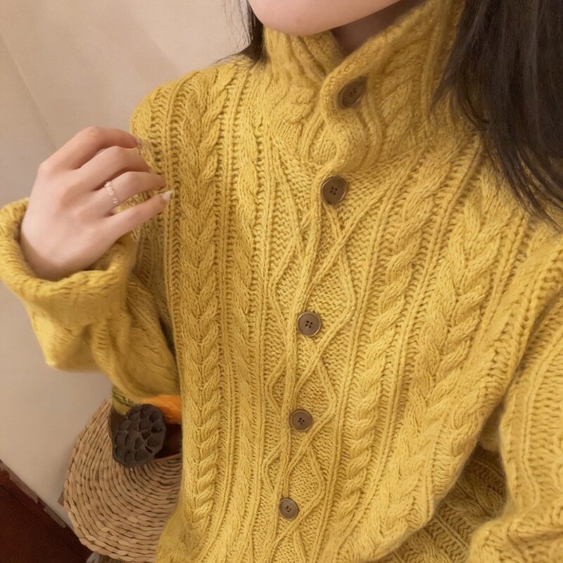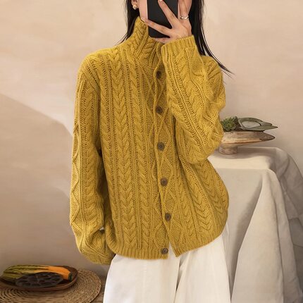 秋冬新款100%纯羊毛针织开衫女毛衣外套宽松韩版时尚长袖上衣