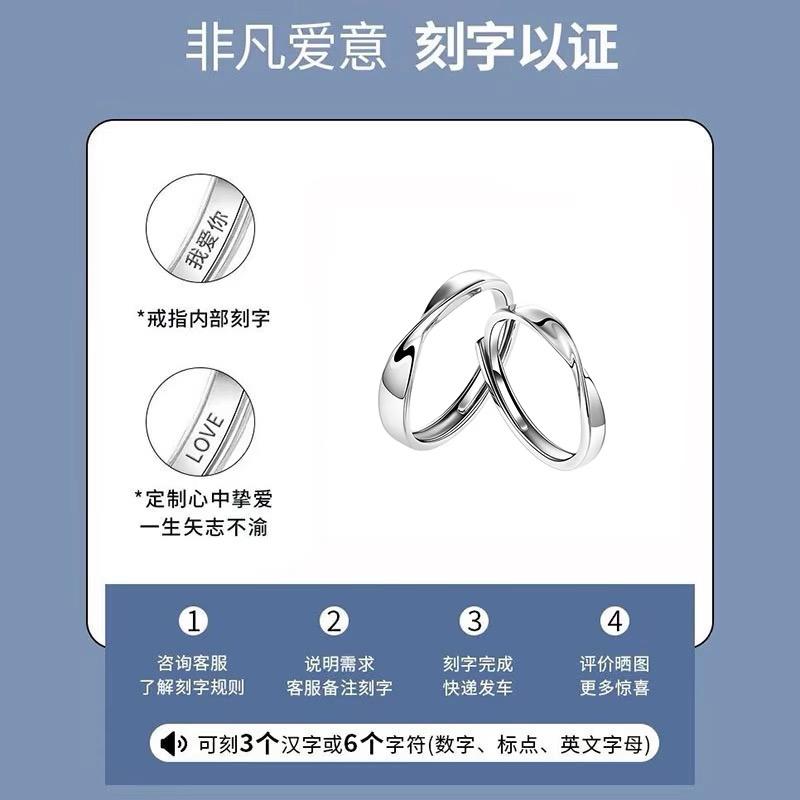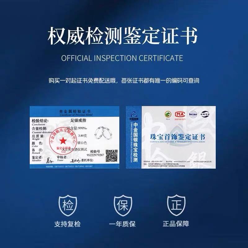 十年老店纯银999情侣对戒可刻字