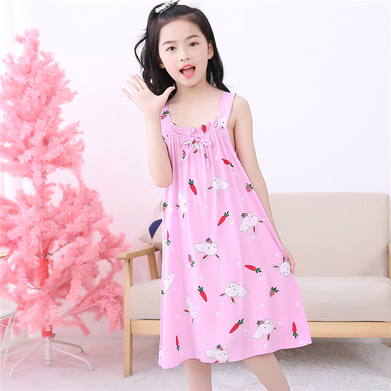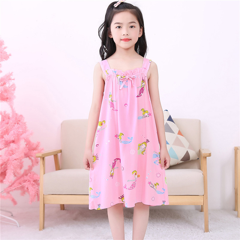 女童睡裙夏季薄款棉绸公主吊带裙儿童裙子小女孩无袖睡衣家居服