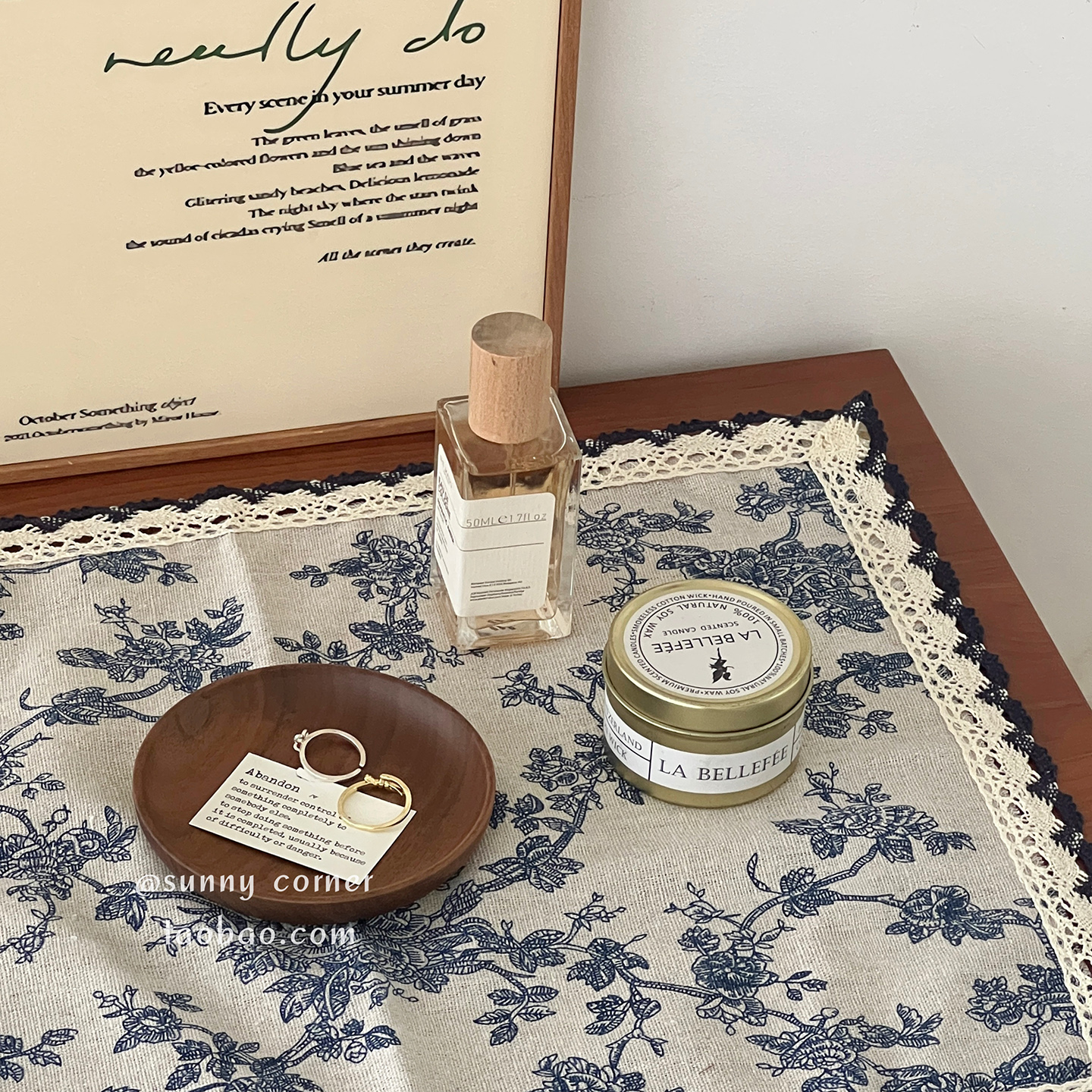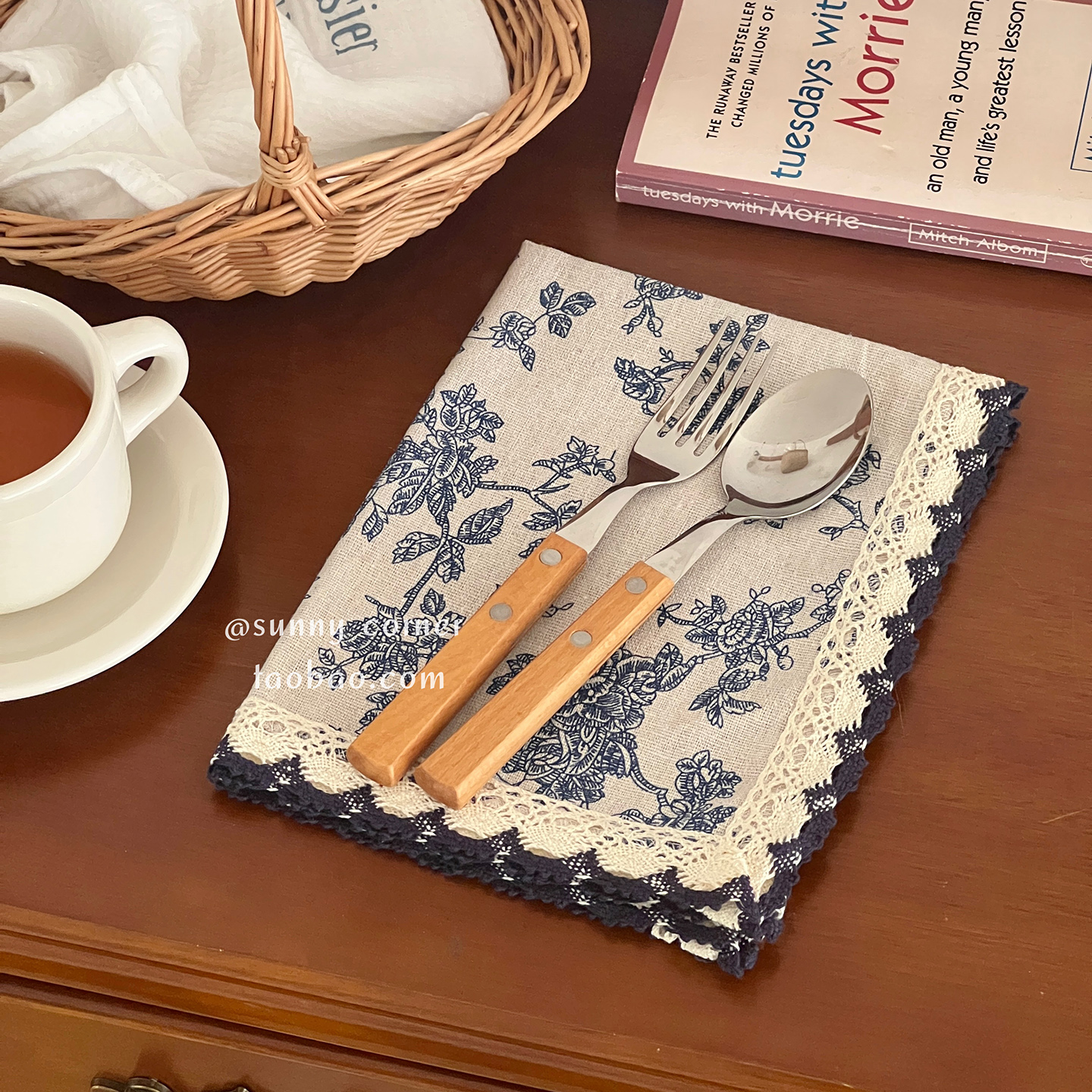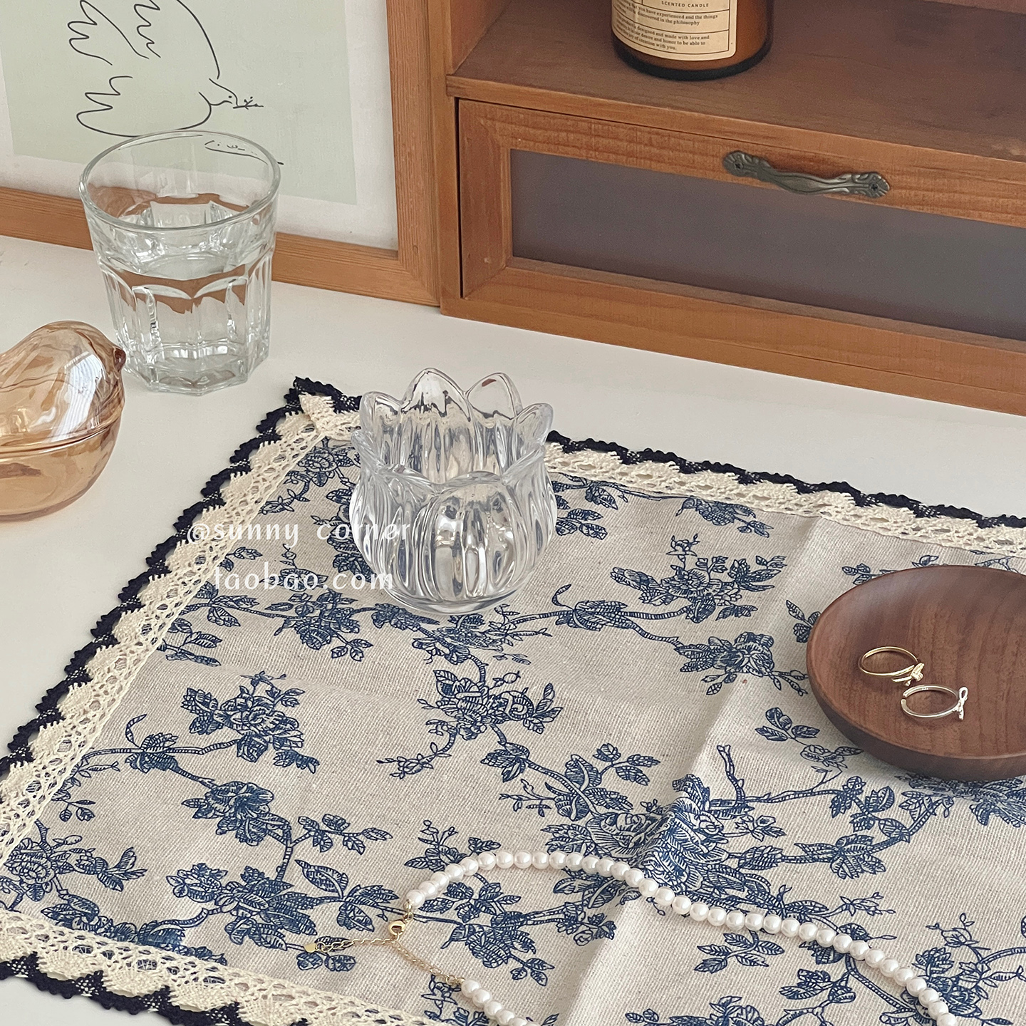 复古法式蓝色碎花布艺餐垫隔热垫ins风桌垫西餐垫拍照装饰背景布