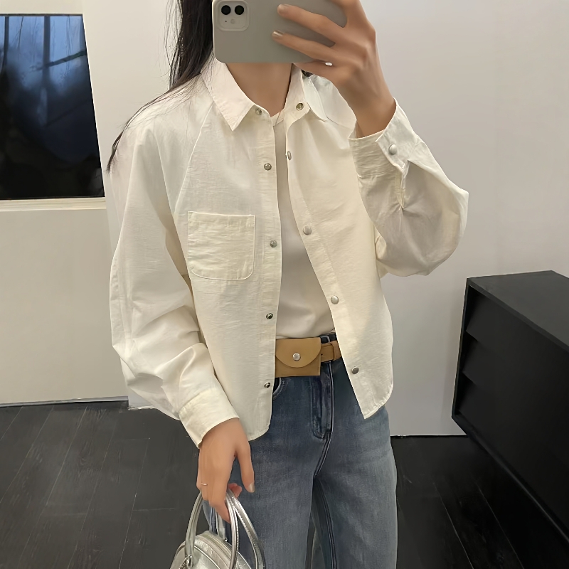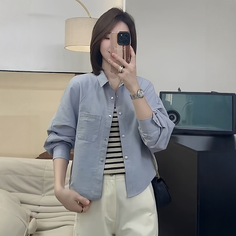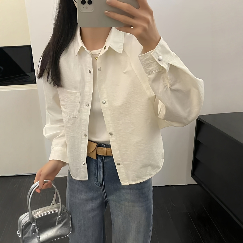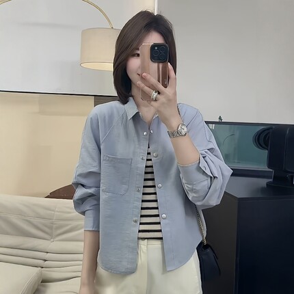 龟背设计感衬衫短款薄款外套女秋季2025新款休闲简约遮肉衬衣上衣