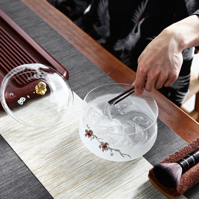 玻璃茶洗带盖洗茶杯器皿家用耐高温可加热大号消毒锅茶具配件水盂
