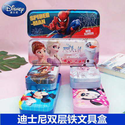 迪士尼文具盒蜘蛛侠男女孩冰雪奇缘多功能双层铁铅笔盒小学生儿童幼儿园可爱卡通创意文具盒一二三年级笔盒