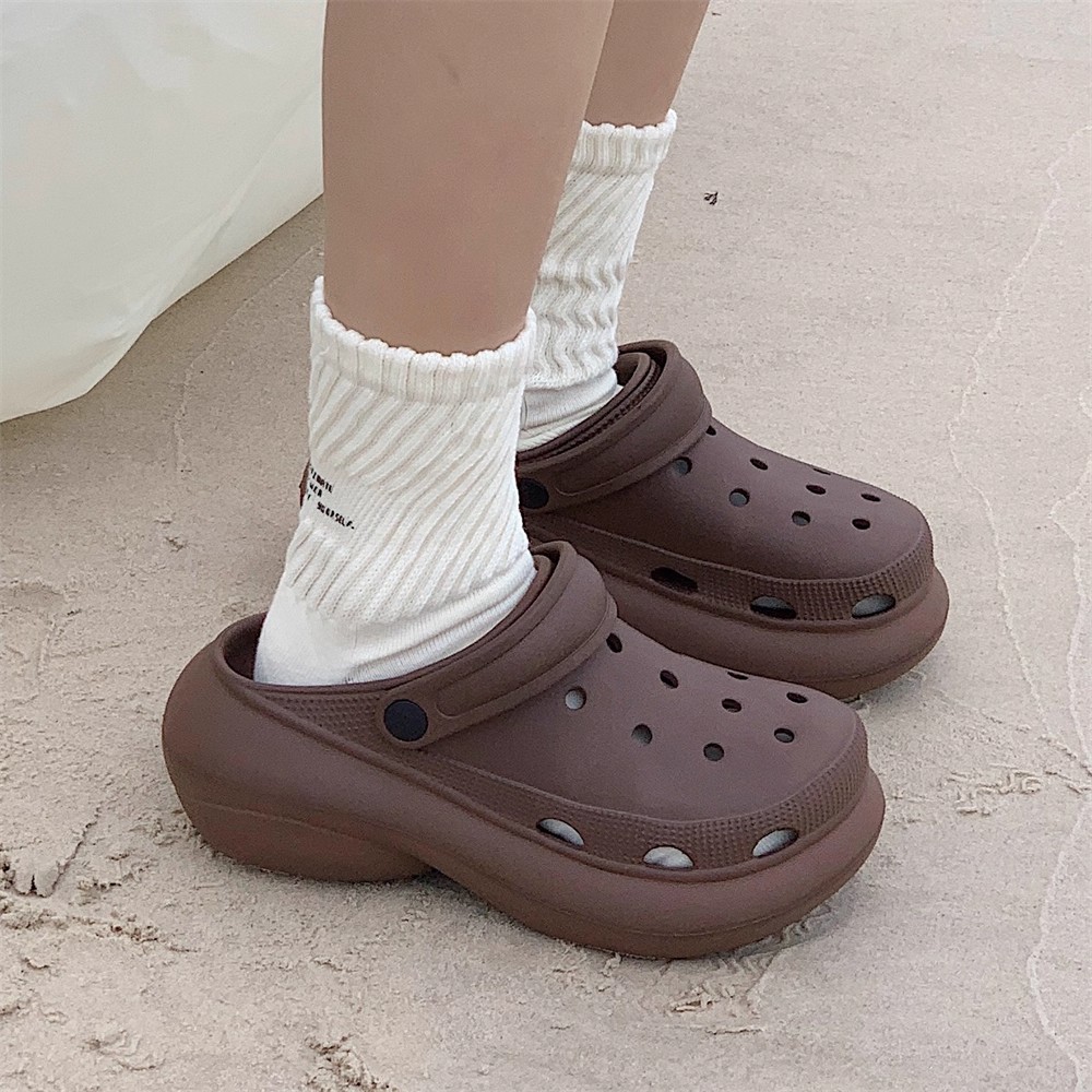日本进口韩版ins潮时尚增高跟洞洞鞋女夏季休闲防滑百搭沙滩凉鞋