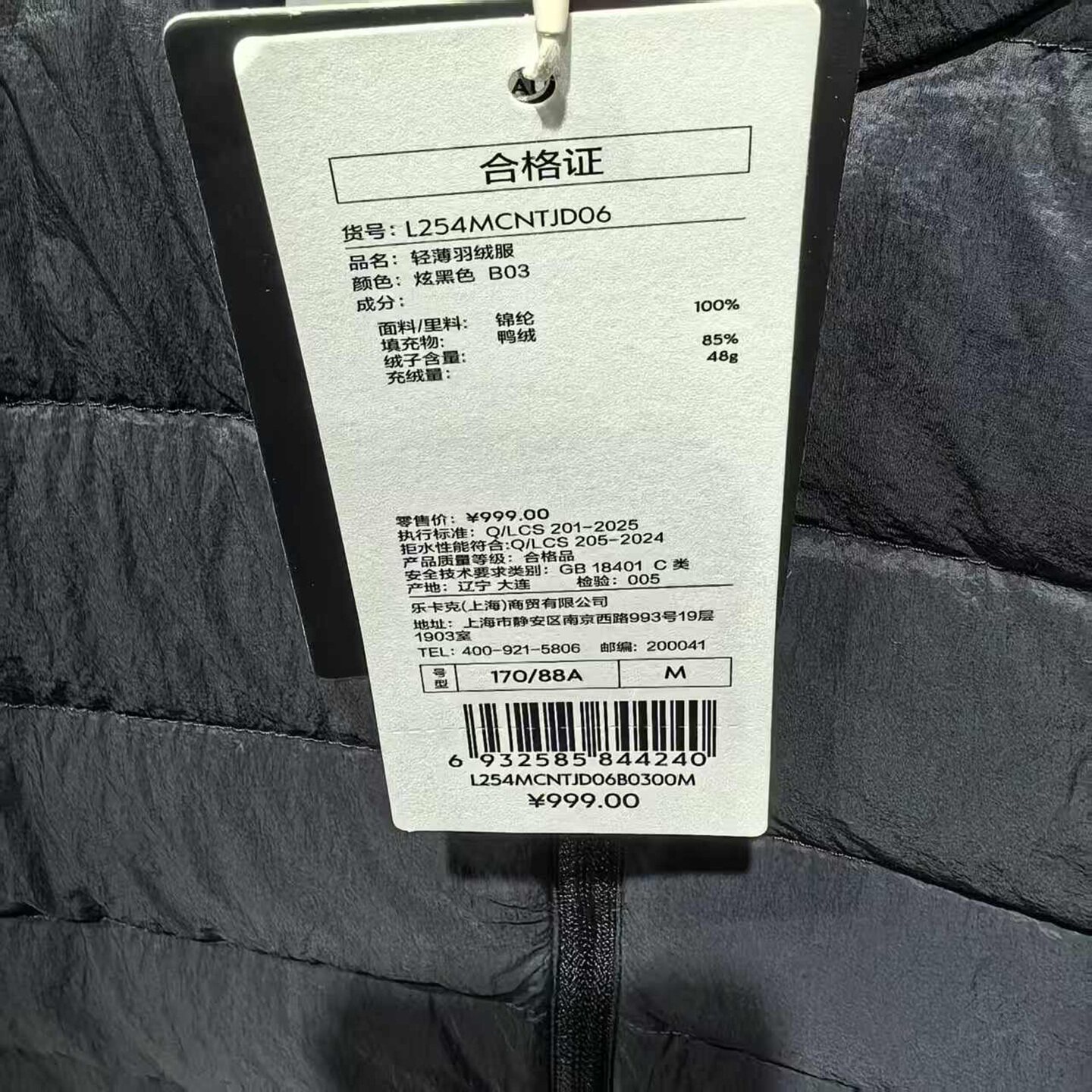 乐卡克法国公鸡25年冬季男士运动休闲立领轻薄羽绒服L254MCNTJD06