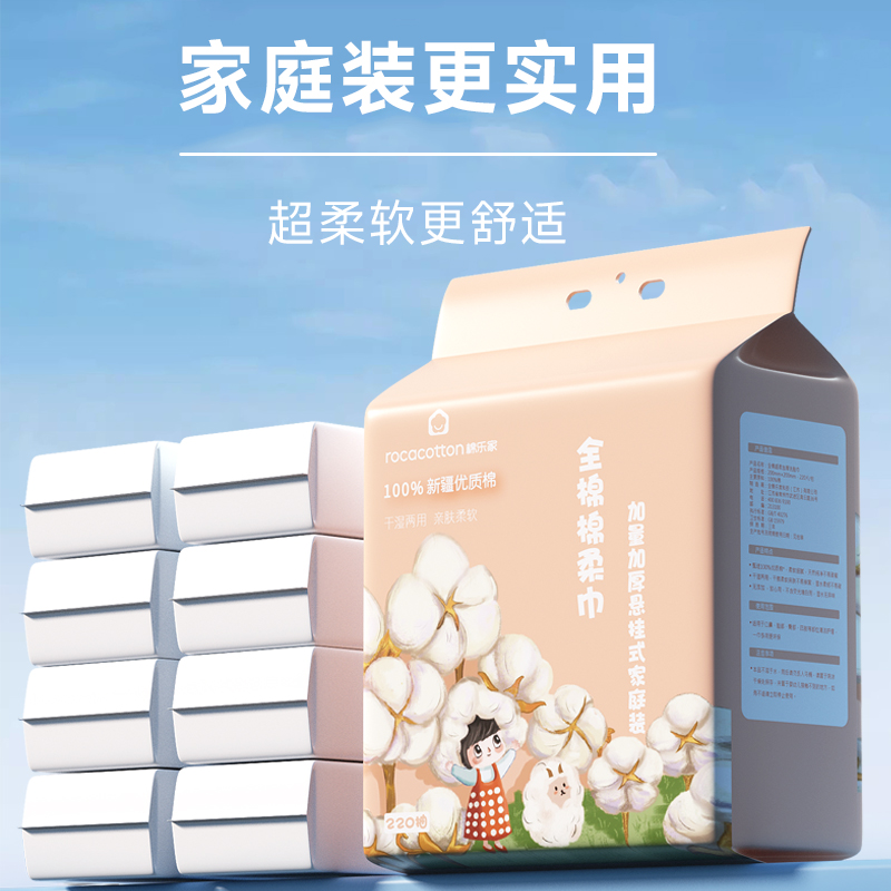 全棉乐家 100%棉悬挂式洗脸巾壁挂式婴儿专用洁面棉柔巾加厚220抽
