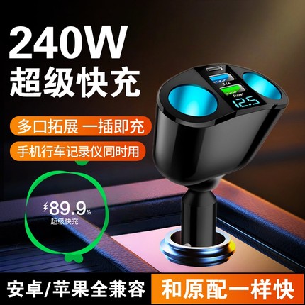 车载充电器超级快充点烟器拓展插头多功能汽车通用240W逆变器货车