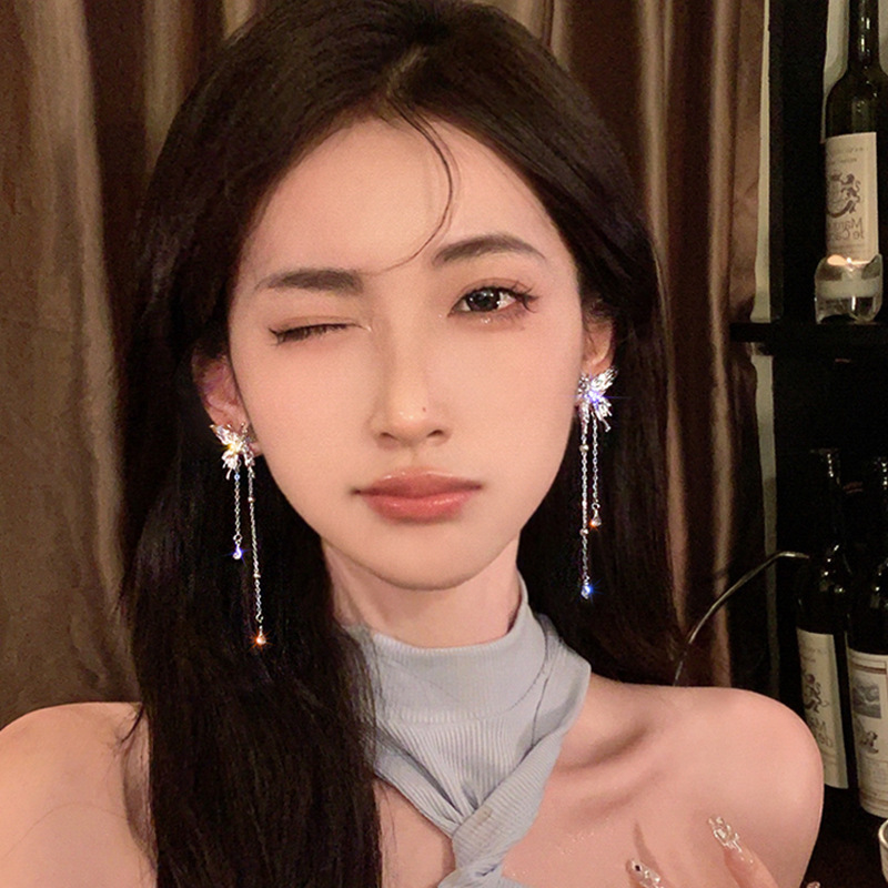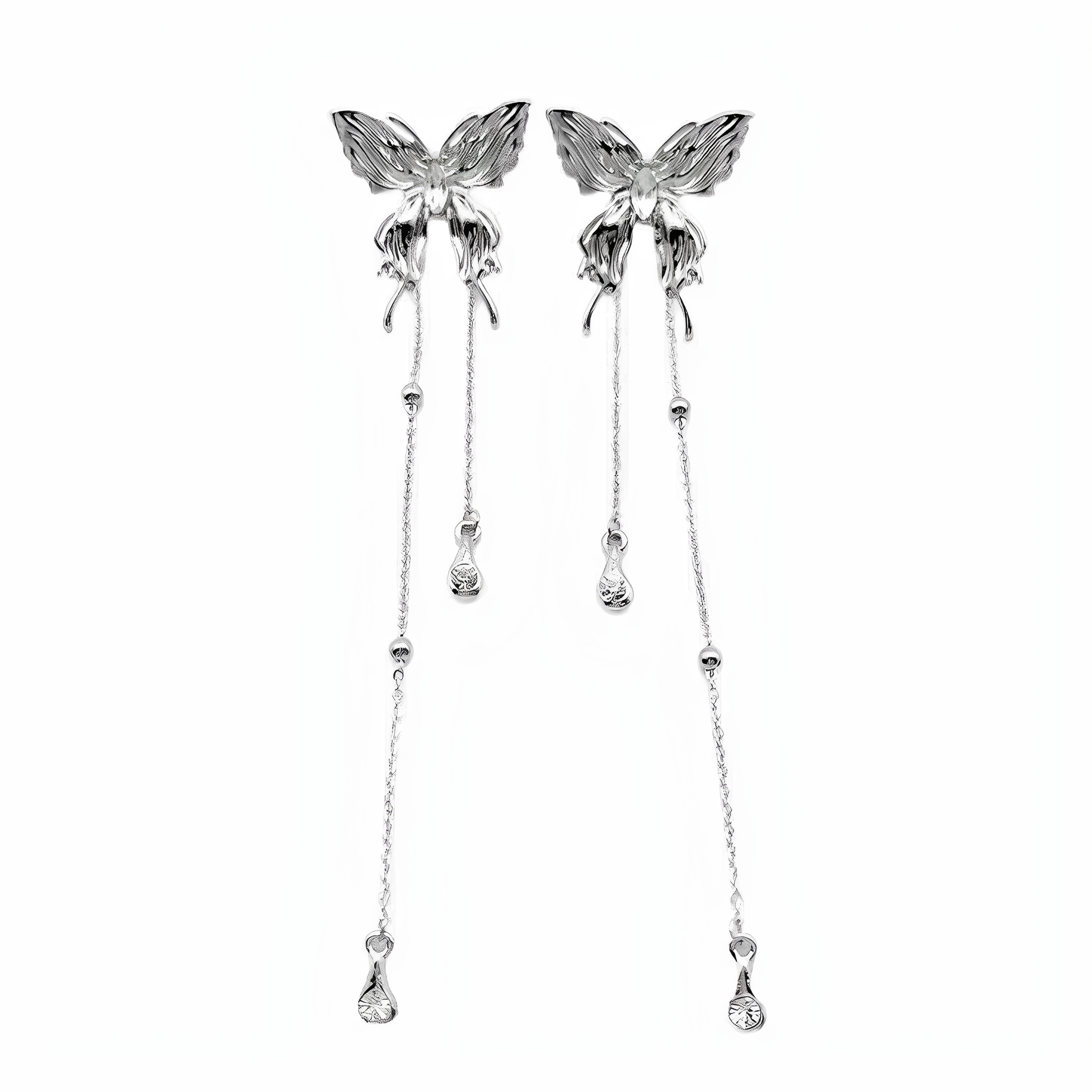 养耳洞塑料针甜酷蝴蝶流苏耳钉女轻奢高级感显脸小防过敏耳环耳饰