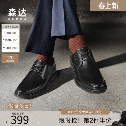 森达正装皮鞋秋新商场同款经典圆头男鞋牛皮革商务德比鞋K5401CM5