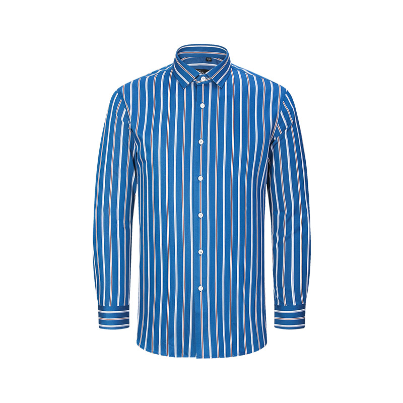 【竹纤维】乔治白春秋男士长袖衬衫休闲尖领撞色条纹上衣直筒顺滑