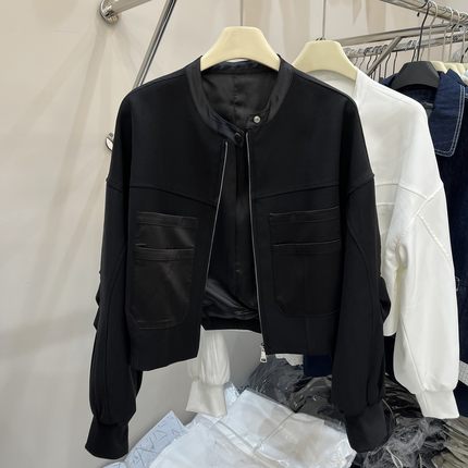 欧货春装新款休闲百搭复古短外套洋气设计感立领小个子女夹克上衣