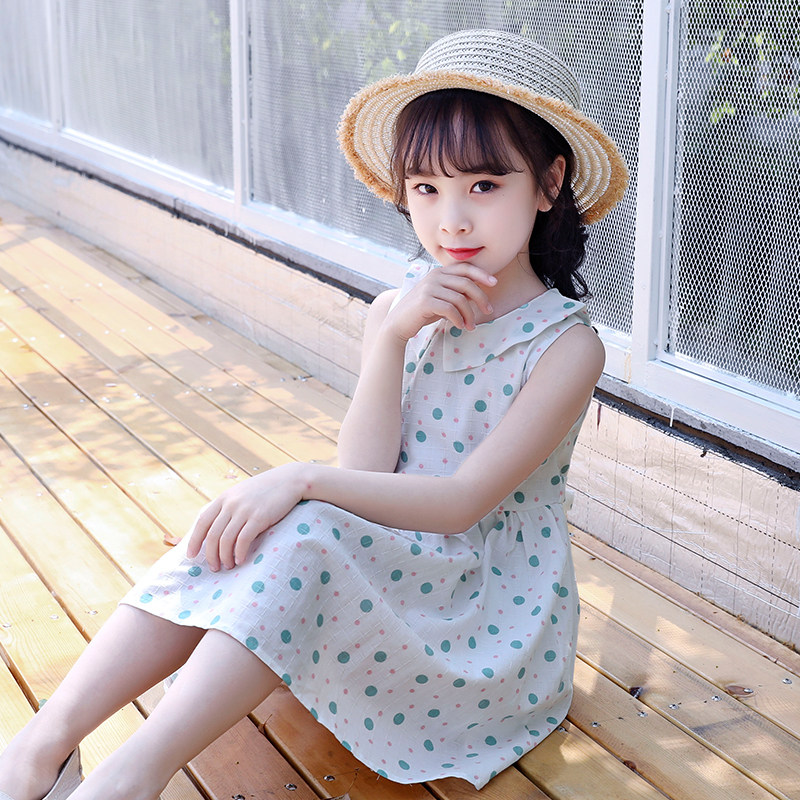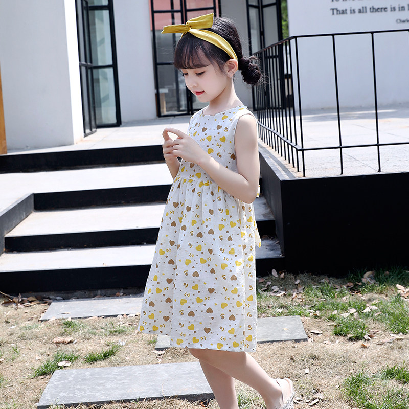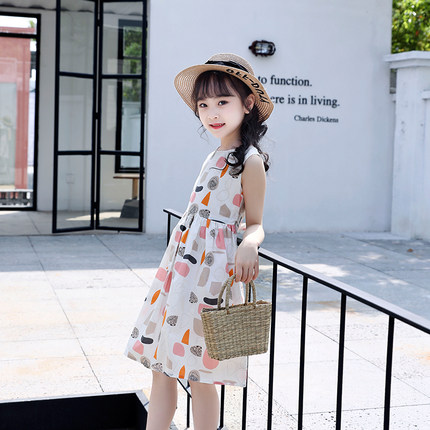 女童连衣裙2021新款夏装无袖吊带裙洋气女孩背心裙碎花棉布裙子潮