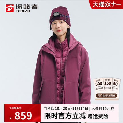 探路者冲锋衣女秋冬新款户外三合一羽绒内胆可拆卸防风防水两件套