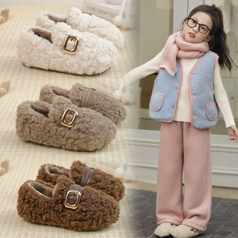 女童毛毛鞋加绒保暖儿童豆豆鞋