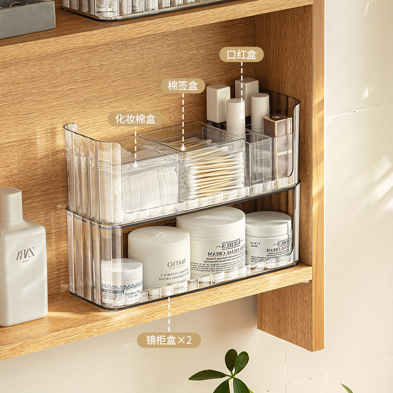镜柜收纳盒卫生间可叠加化妆品面膜置物架梳妆台桌面多层整理盒子