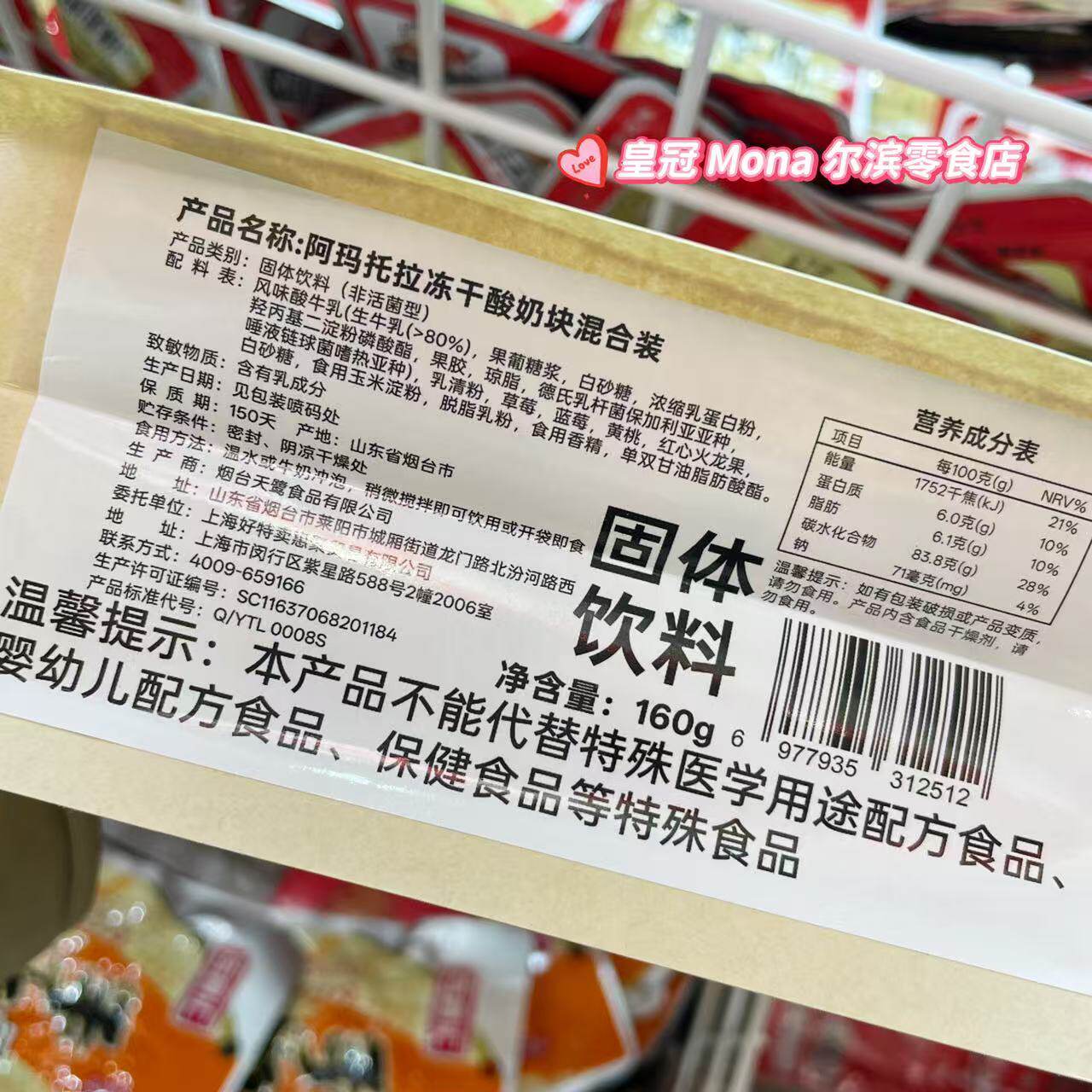 *4种混合口味*阿玛托拉冻干酸奶块草莓/蓝莓/黄桃/红心火龙果160g