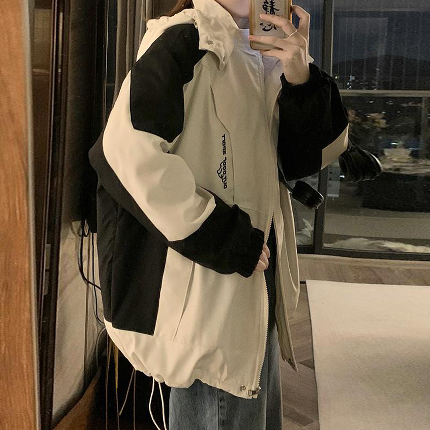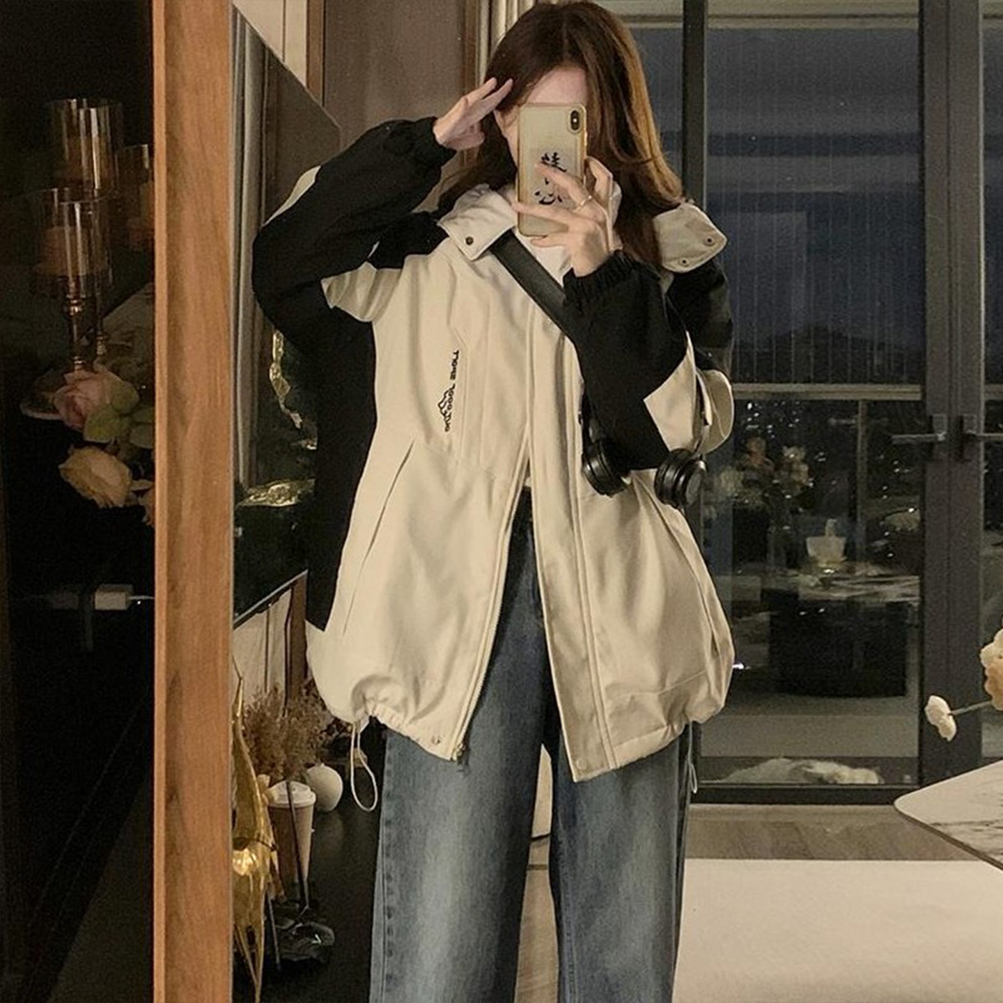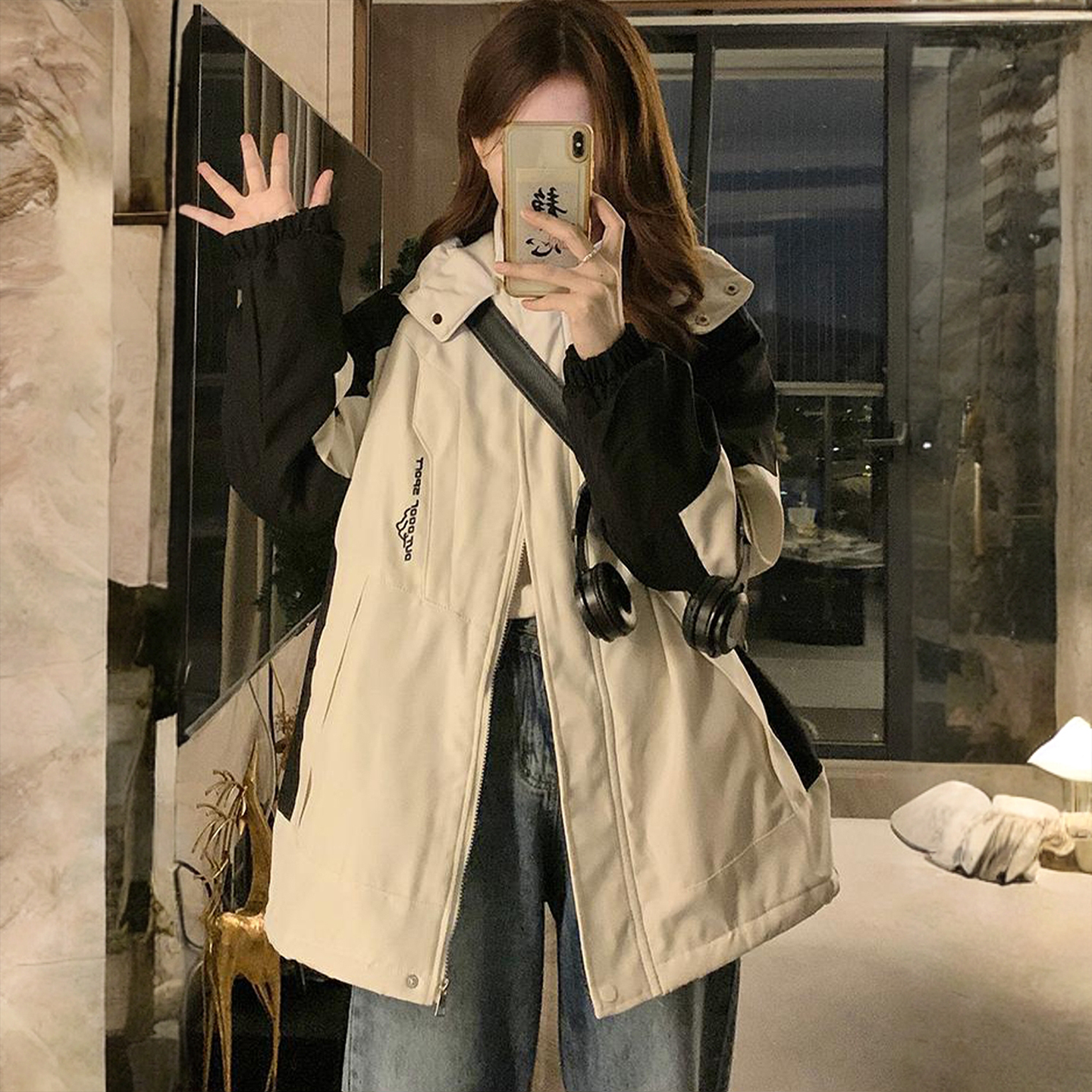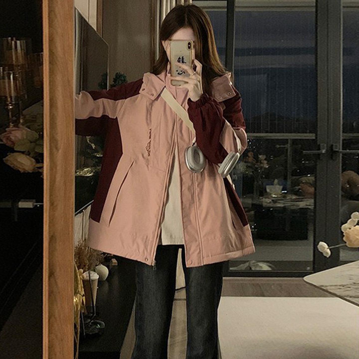 300斤大码女装撞色连帽冲锋衣女胖mm秋冬加厚保暖夹棉棉服外套潮