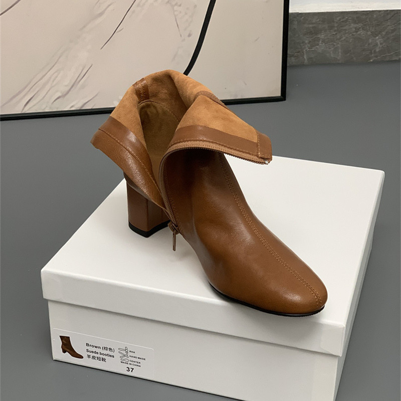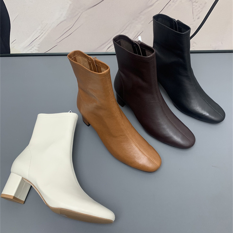 外贸原单侧拉链复古靴子女短靴筒软真皮粗跟高跟圆头春秋2025新款
