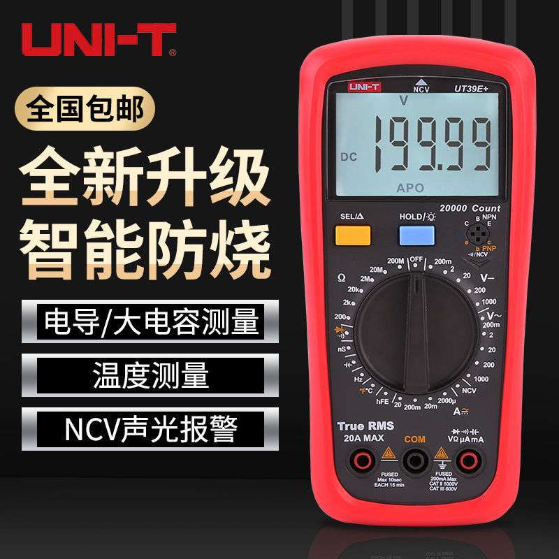 优利德UT33+数字万用表多功能小型家用电工智能防烧防误测多用表