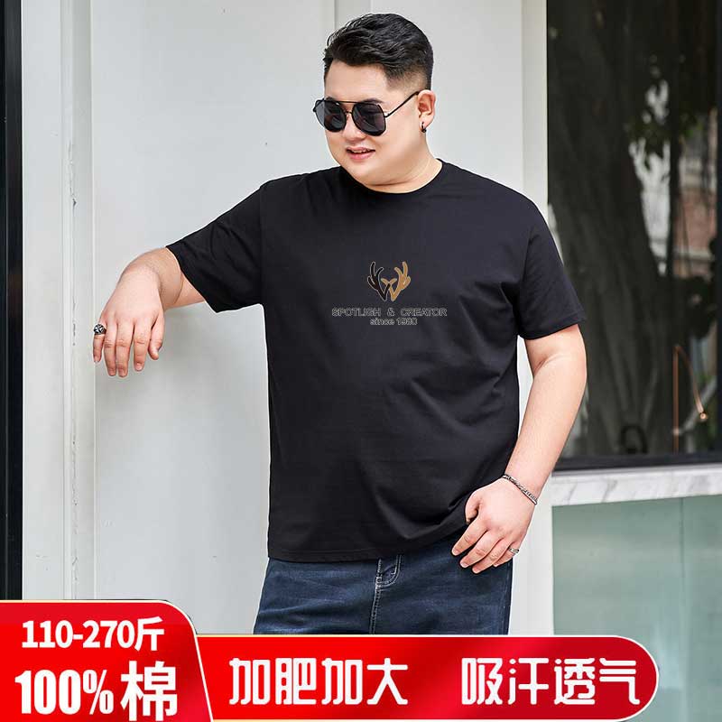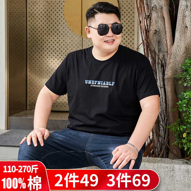 胖子短袖T恤男大码纯棉圆领加大加肥宽松休闲夏季男装上衣打底衫