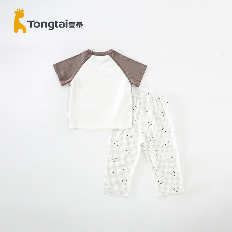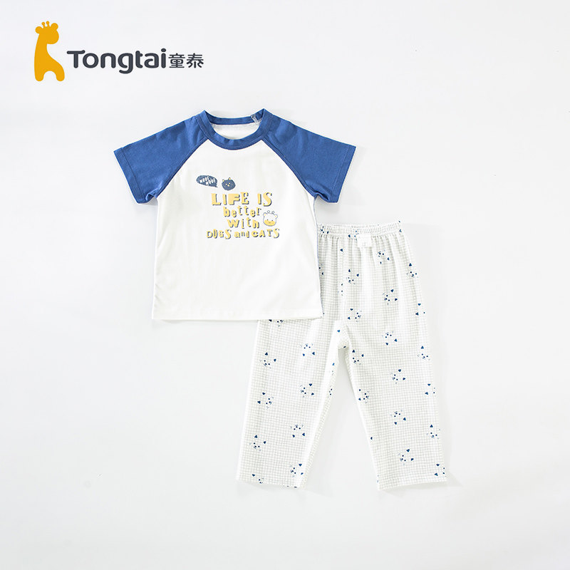 童泰婴儿家居服夏季薄款男童短袖长裤套装宝宝睡衣空调服两件套