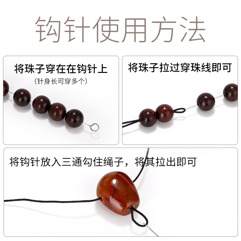 文玩钩针手工串珠工具DIY穿珠子的针手串手链钩三通佛头细款勾针