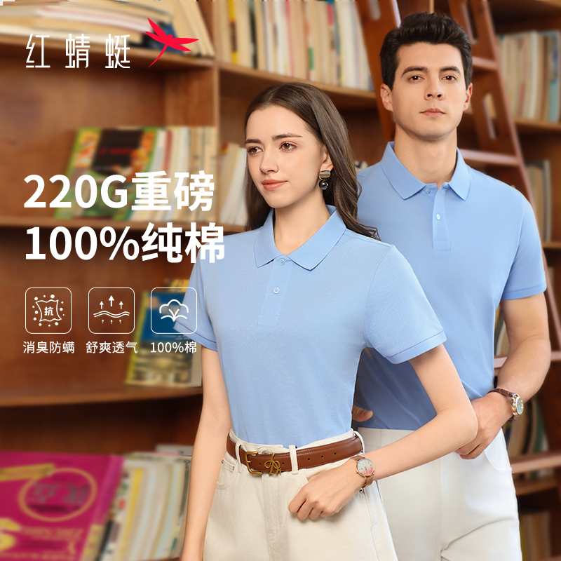 【纯棉】红蜻蜓翻领短袖T恤男士夏季百搭纯色休闲时尚POLO衫男装