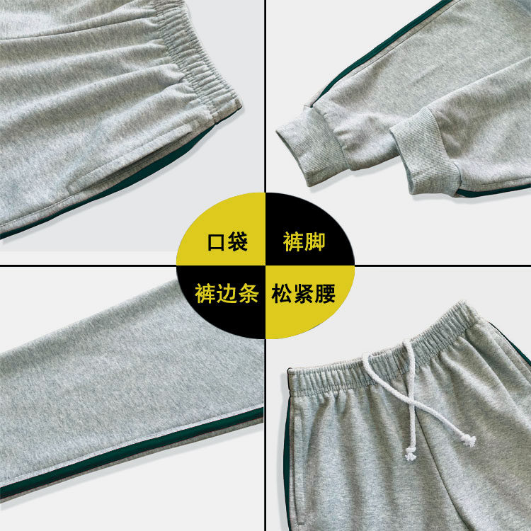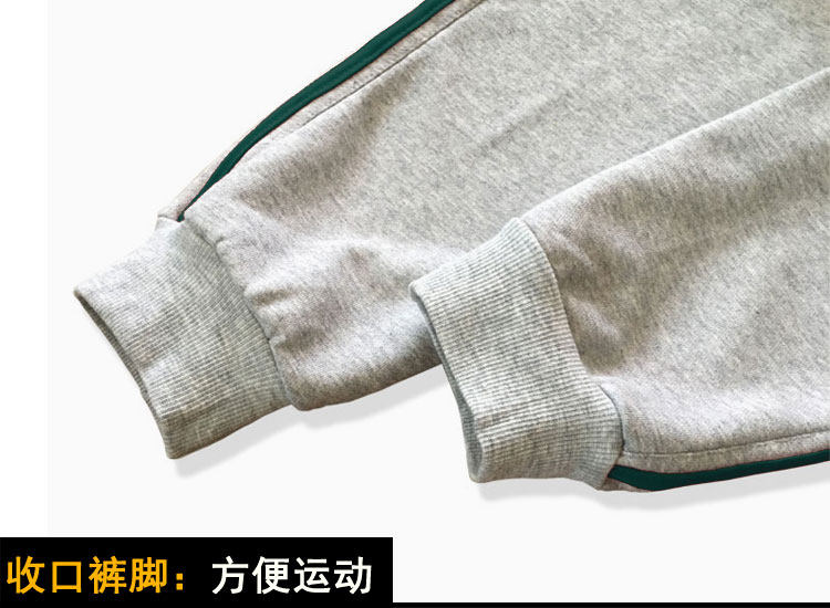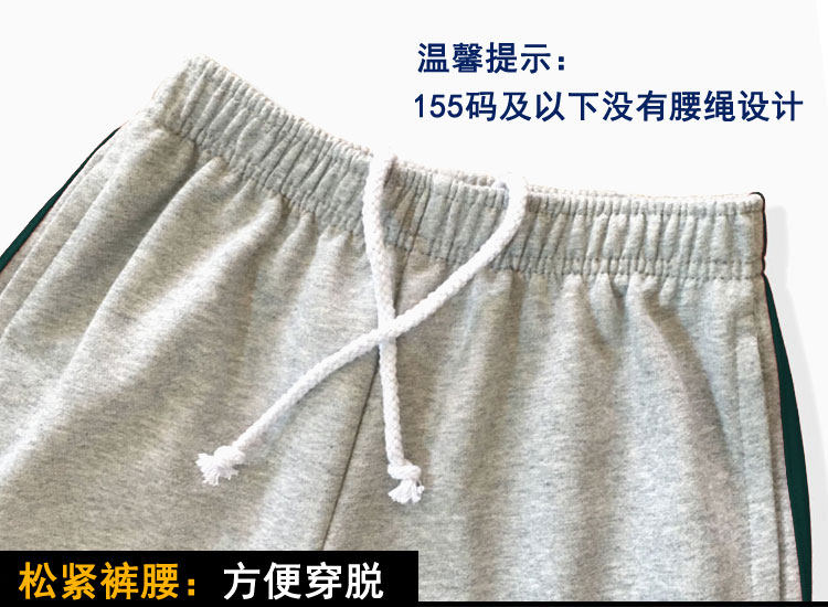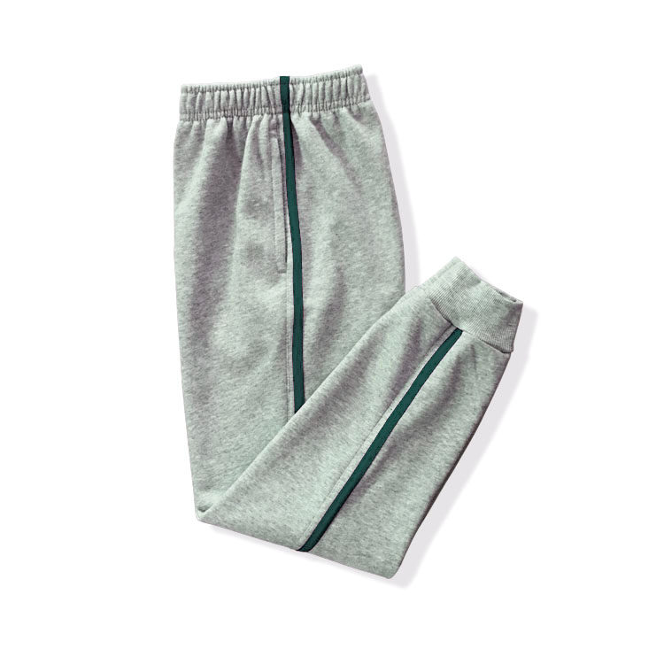 浅灰色纯棉墨绿色杠学生裤束脚款