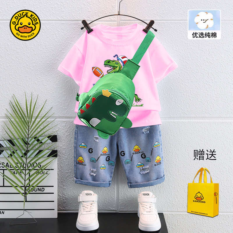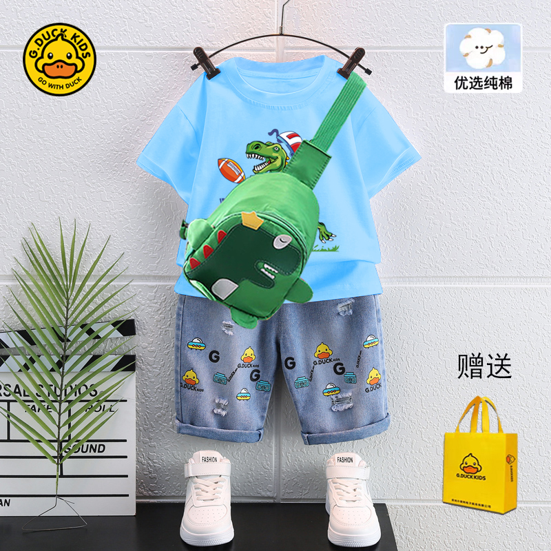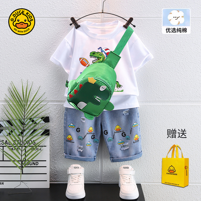 小黄鸭布咚儿童套装短袖牛仔短裤