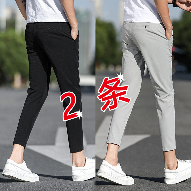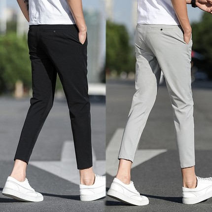 男士冰丝休闲裤修身韩版潮流夏季九分裤男生弹力男装 9分薄款小脚