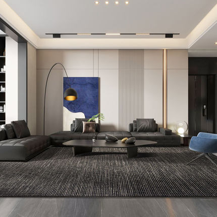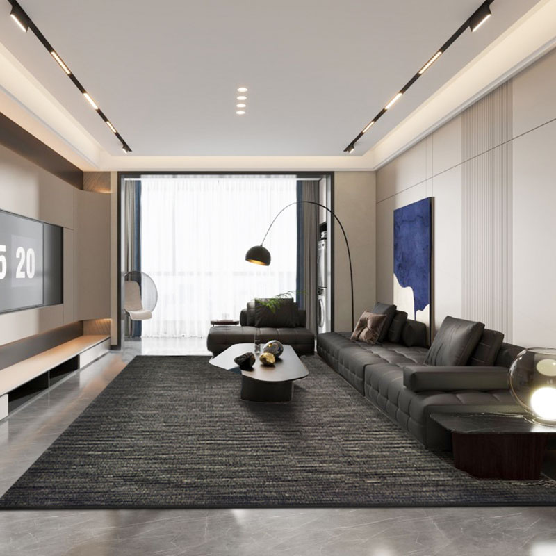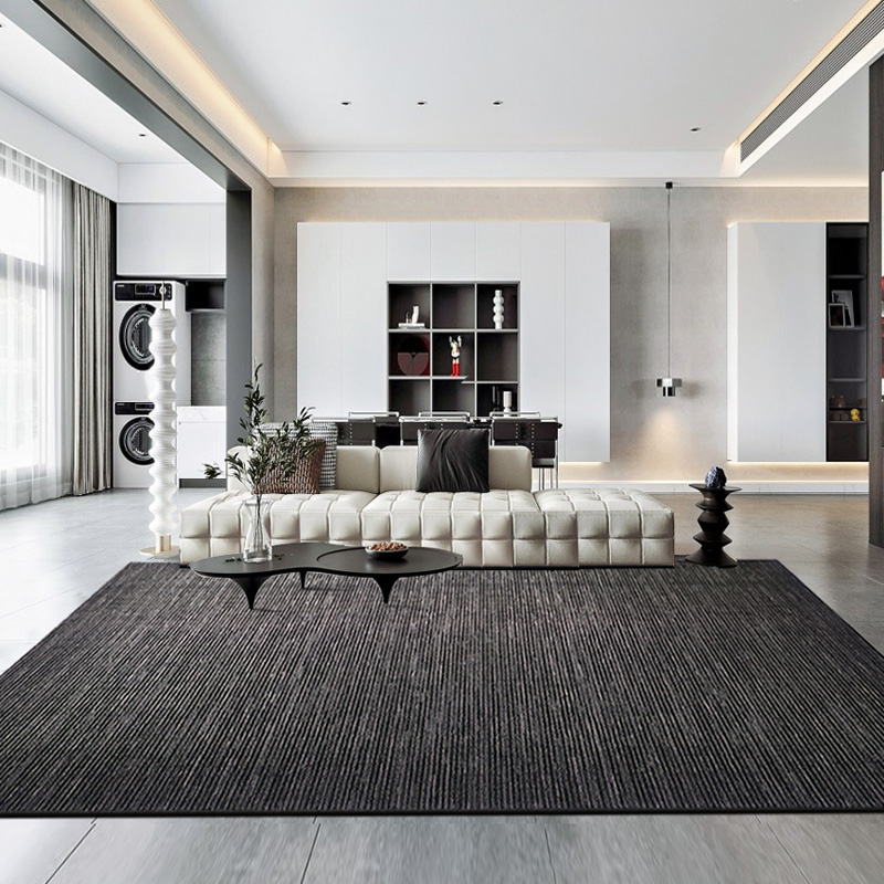 进口羊毛地毯客厅茶几毯现代简约高级灰垫满铺卧室黑白竖条纹极简