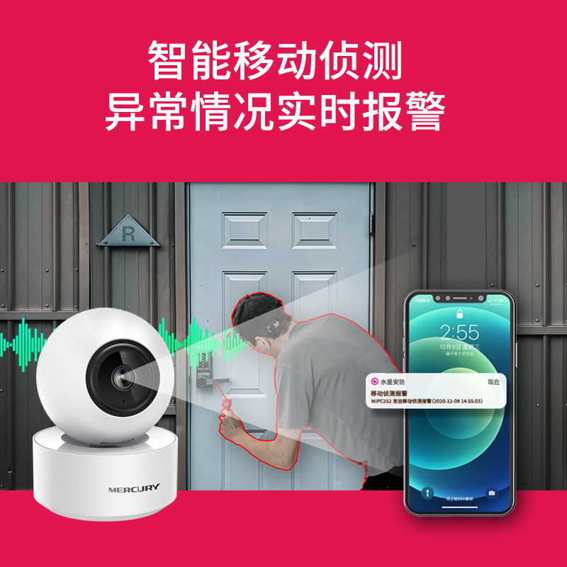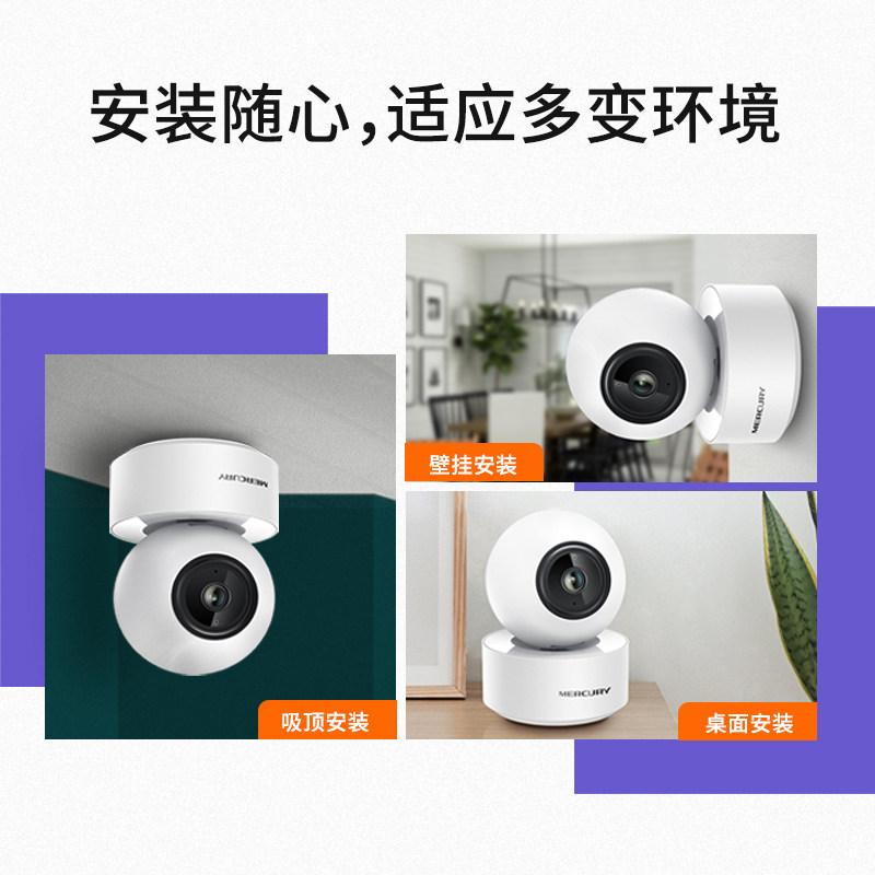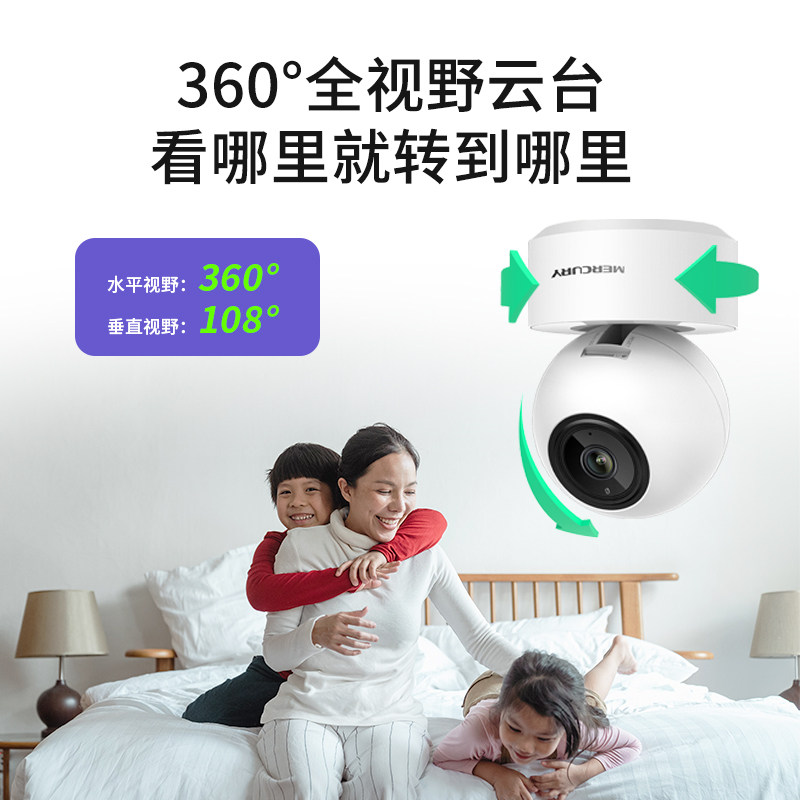 水星摄像头家用无线监控器室内摄影带语音手机远程360度看护球机