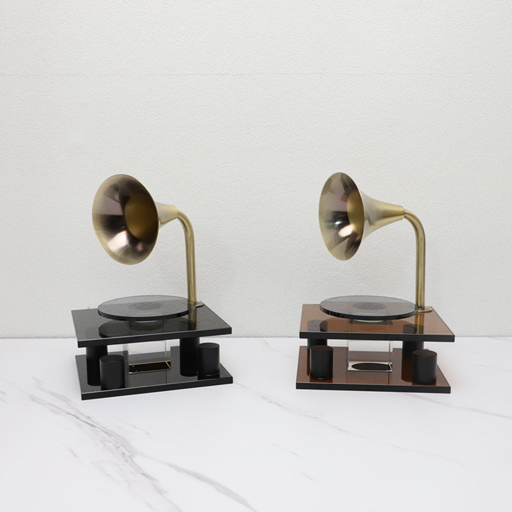 水晶复古唱片机桌面摆件样板间居家客厅电视柜桌面极简播放机装饰