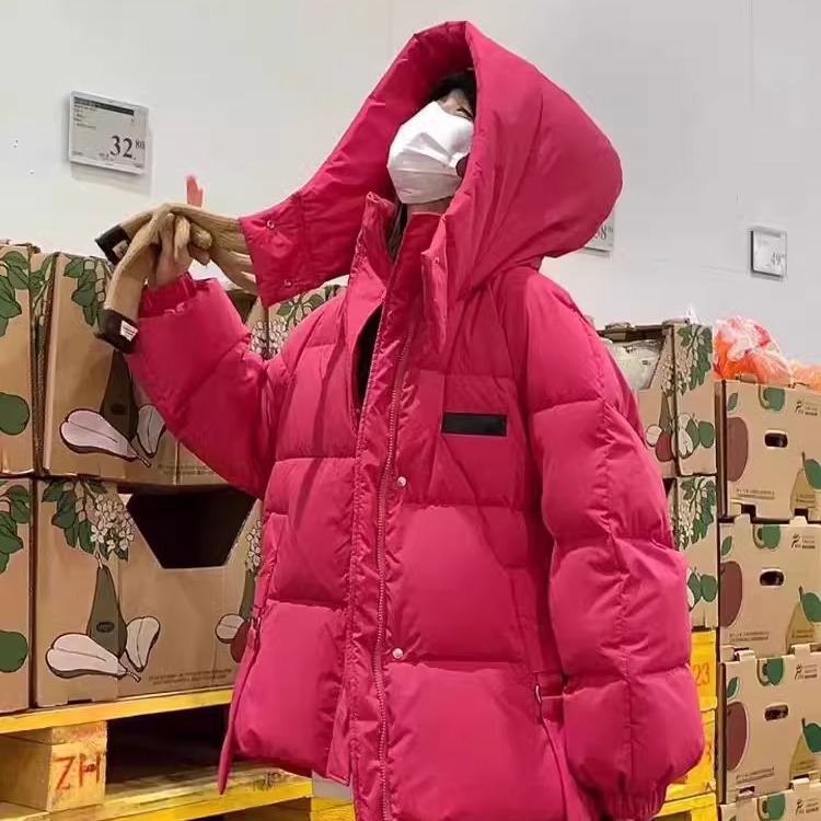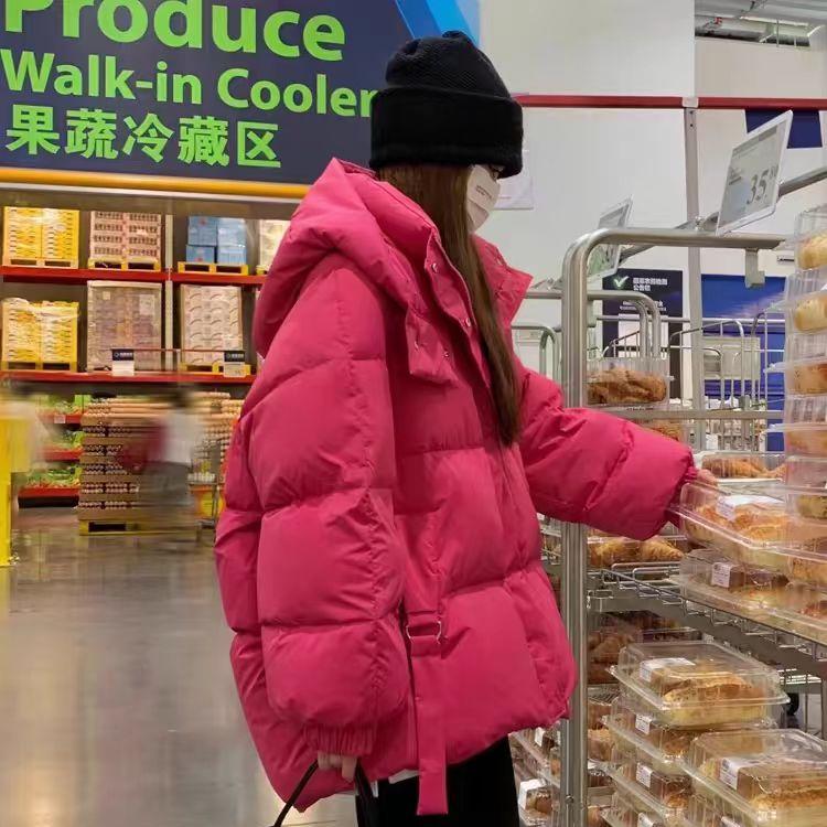 今年流行火龙果色羽绒棉服女韩系宽松学生小个子棉衣棉袄冬季外套