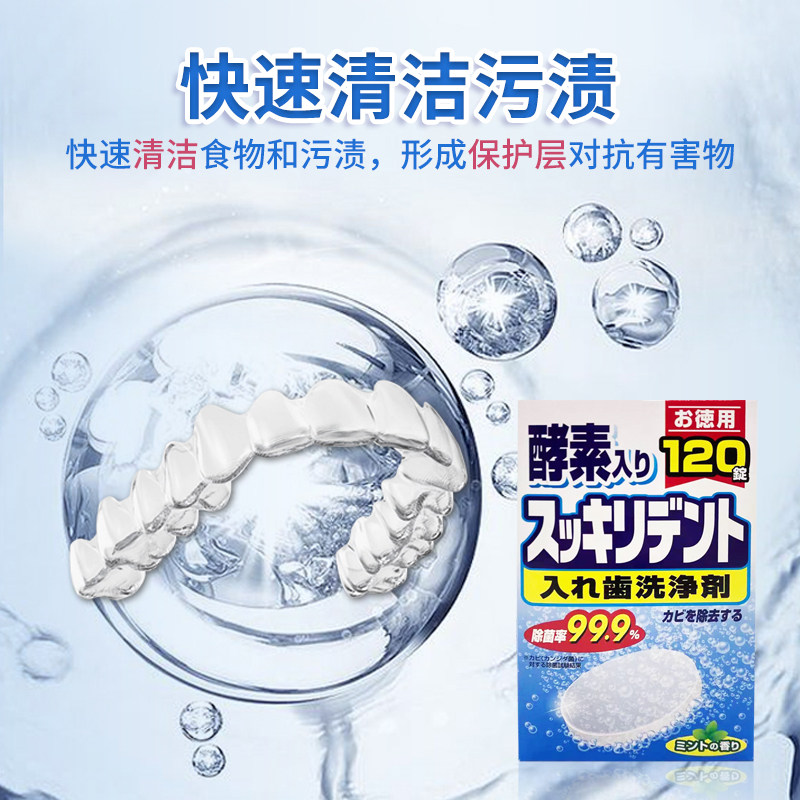 日本保持器狮王假牙清洁片 牙套泡腾洗牙片神器清洗剂除菌隐适美