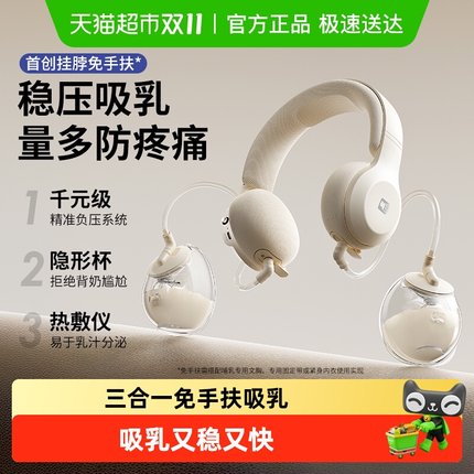 小白熊免手扶珍珠贝双边电动式吸奶器全自动热敷便携式挂脖挤奶器