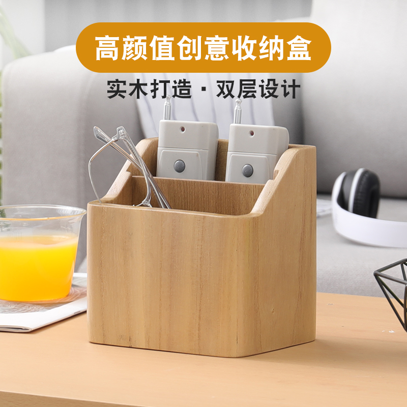 实木桌面遥控器收纳盒多功能客厅茶几整理盒北欧日式创意木制笔筒