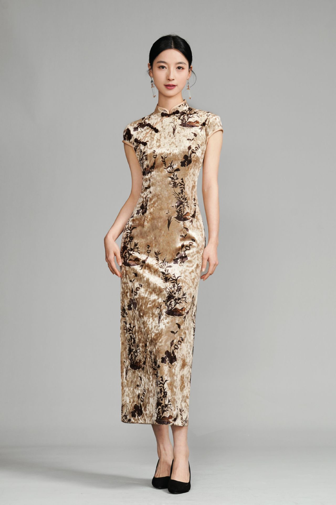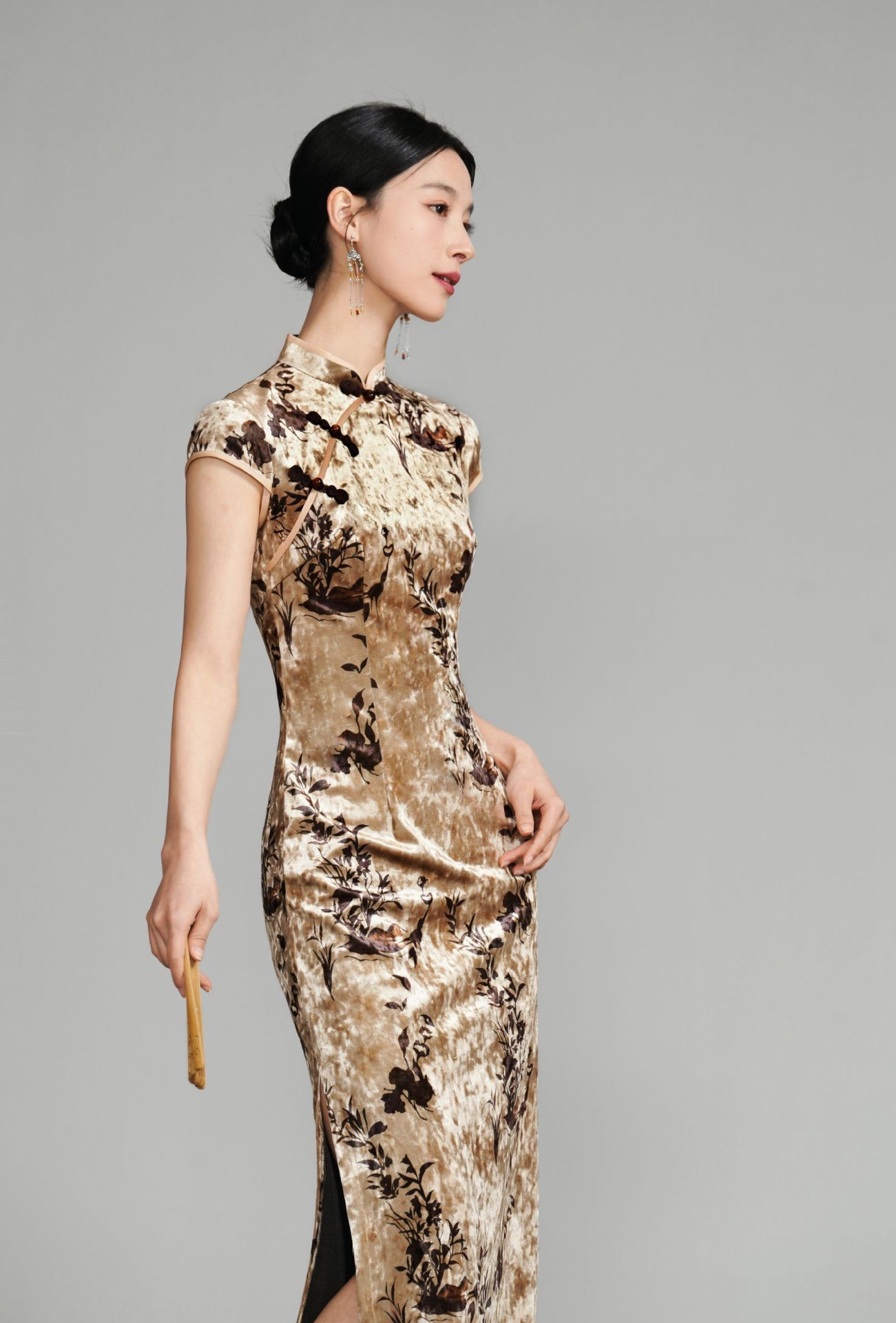 老上海改良版旗袍春季年轻款高端丝绒复古民国风优雅气质礼服长款
