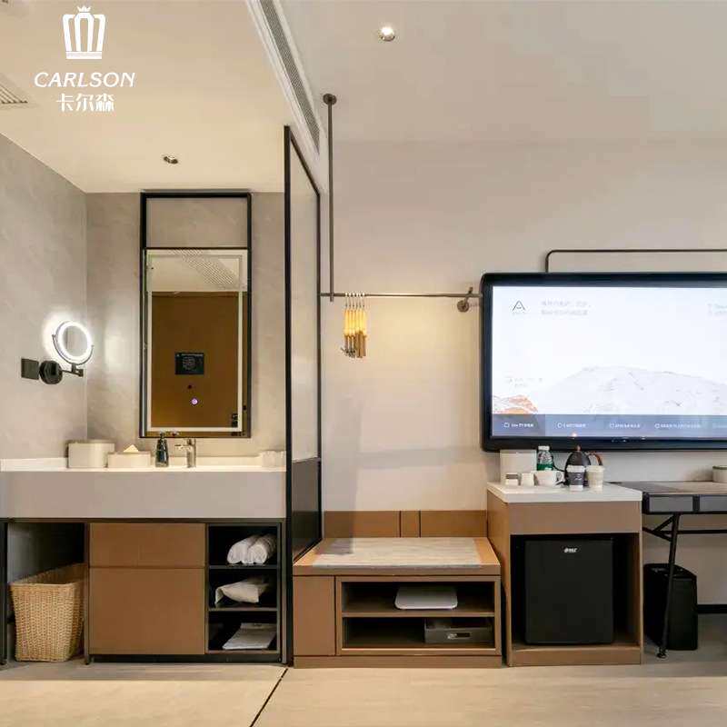 亚朵X酒店民宿宾馆成套客房家具售楼处样板间公寓双人床固装家具