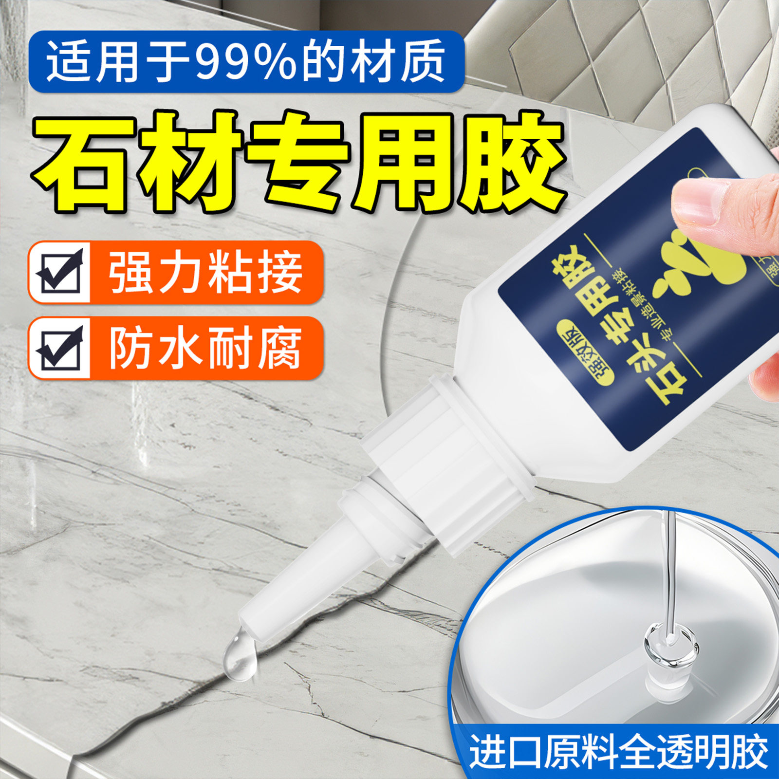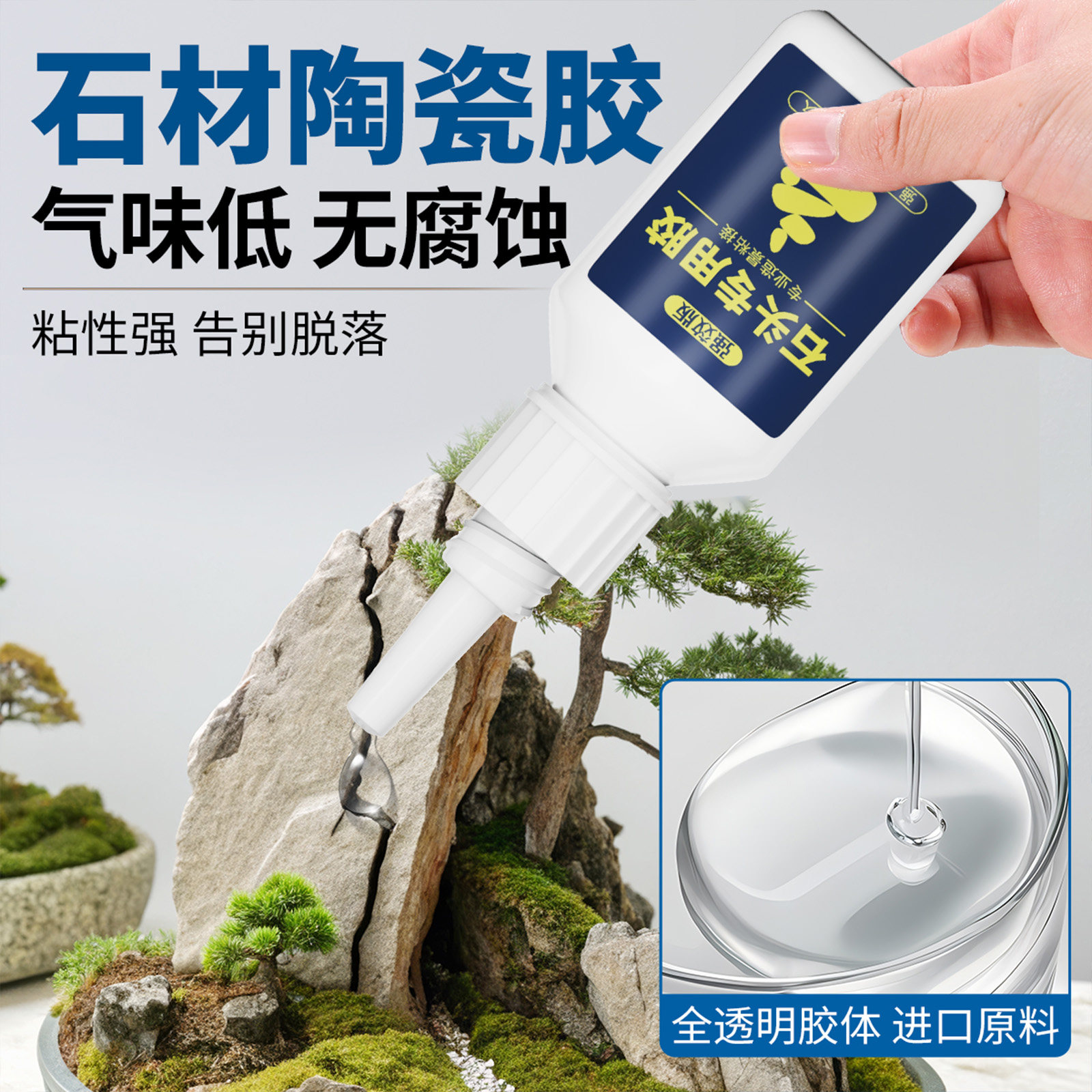 石材专用胶防水快干胶水粘鹅卵石石板花岗石大理石石英石强力裂缝粘接无痕修复瓷砖石头造景修补胶粘合剂